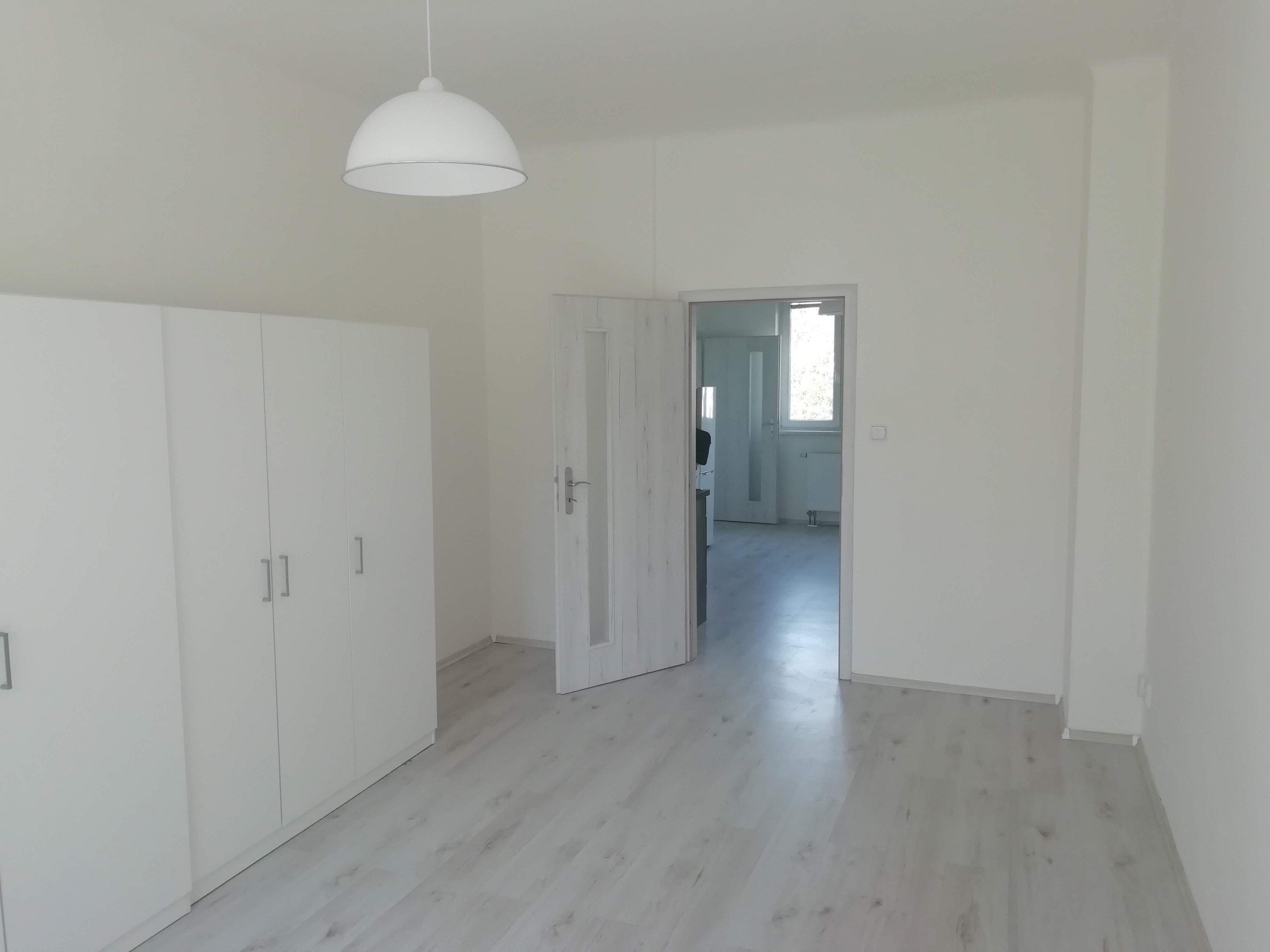 Nabízíme k pronájmu byt 2+KK, 45 m2 ve 3. patře cihlového domu s výtahem. Vstup do bytu je z uzamykatelné zasklené pavlače, která slouží pouze pro dva byty. Samotný byt je po rekonstrukci, má ložnici vybavenou skříněmi a pokoj s kuch. koutem, předsíň, koupelnu s pračkou a odděleným WC(viz plánek ve fotogalerii). Ohřev vody a ústřední vytápění zajišťuje vlastní plynový kotel(nízká spotřeba), podlahy jsou plovoucí a dlažba, kuchyňská linka včetně spotřebičů (el.varná deska, el.trouba, myčka, lednice, digestoř), okna plastová. Z oken bytu je výhled do klidné ulice se spoustou zeleně a dětským hřištěm. V pěší dostupnosti škola a školka 100 m, OC Arkády, metro 500 m, poliklinika. Měsíční náklady na služby 1050,-Kč( dvě osoby, každá další 525,-kč) + elektřina a plyn se převádí na nájemce(cca 2500,-Kč/měs), kauce jeden nájem, provize RK jeden nájem bez služeb. Majitel preferuje dlouhodobý pronájem a vyhrazuje se právo výběru nájemce. Byt je volný ihned, více informací u makléře. Doporučujeme.