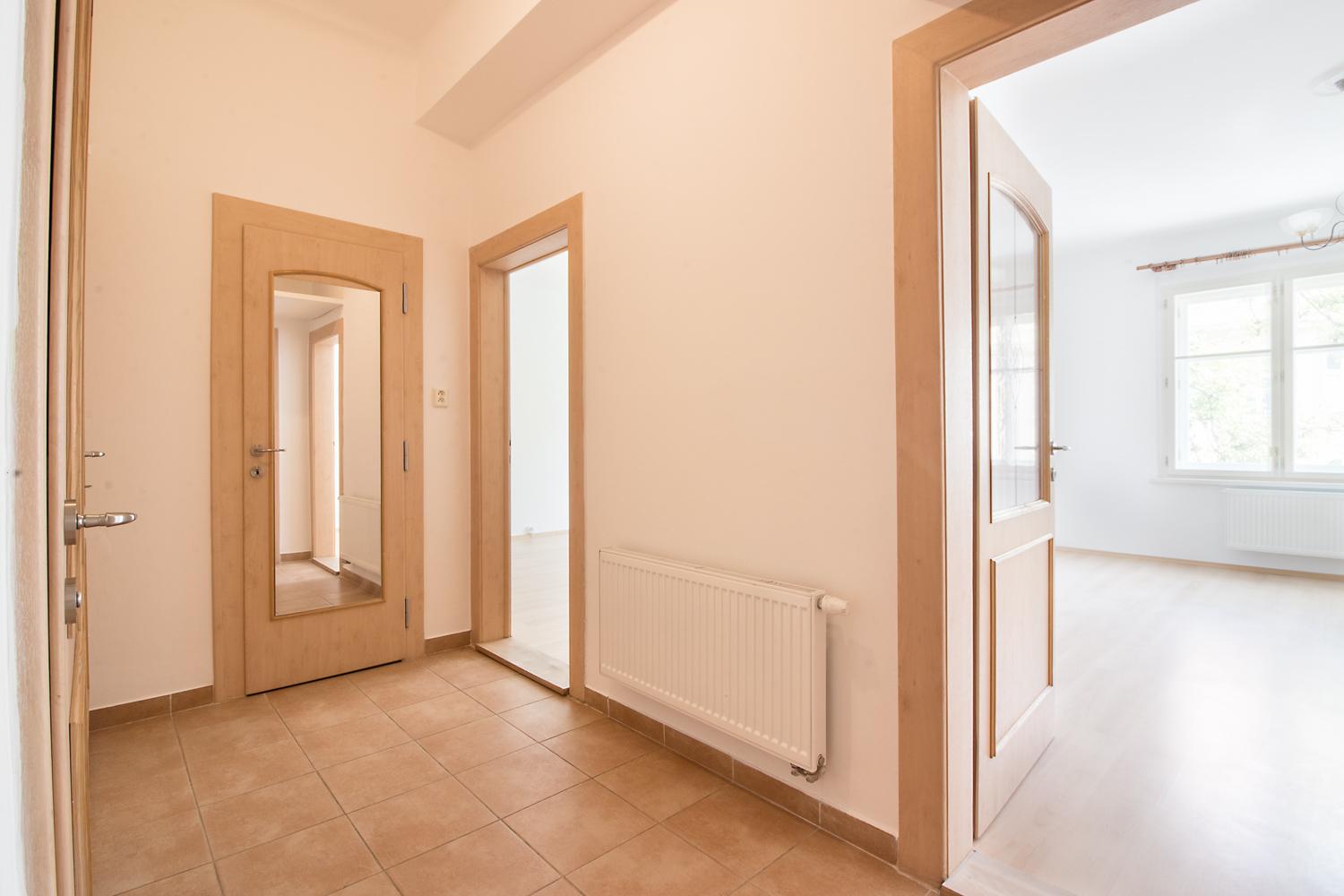 V bytě najdeme dva velké pokoje, plně vybavenou kuchyň, koupelnu se sprchovým koutem včetně pračky, samostatnou toaletu a dvě komory.
