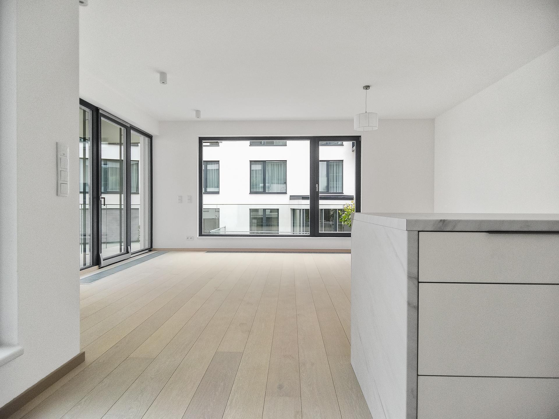 Dispozičně se jedná o velké 3+kk. Prostorově dominuje obývací pokoj s kuchyní na míru s 40 m. Ložnice s vestavěnými skříněmi má 12 m² a další místnost lze využít jako pracovnu nebo dětský pokoj. Samozřejmostí je koupelna s wc a k dispozici je také samostatné wc s komorou. Ve vstupní hale jsou již připraveny vestavěné skříně a velkou radost Vám udělá terasa (20,6 m²). Součástí nájmu je také sklep (10 m²), vlastní parkovací stání v garáži a jedno stání před domem. Za poplatek je možné využít zásuvku pro nabíjení vozidel. I např. pro návštěvu nebude problém zaparkovat na okolních parkovacích zónách.