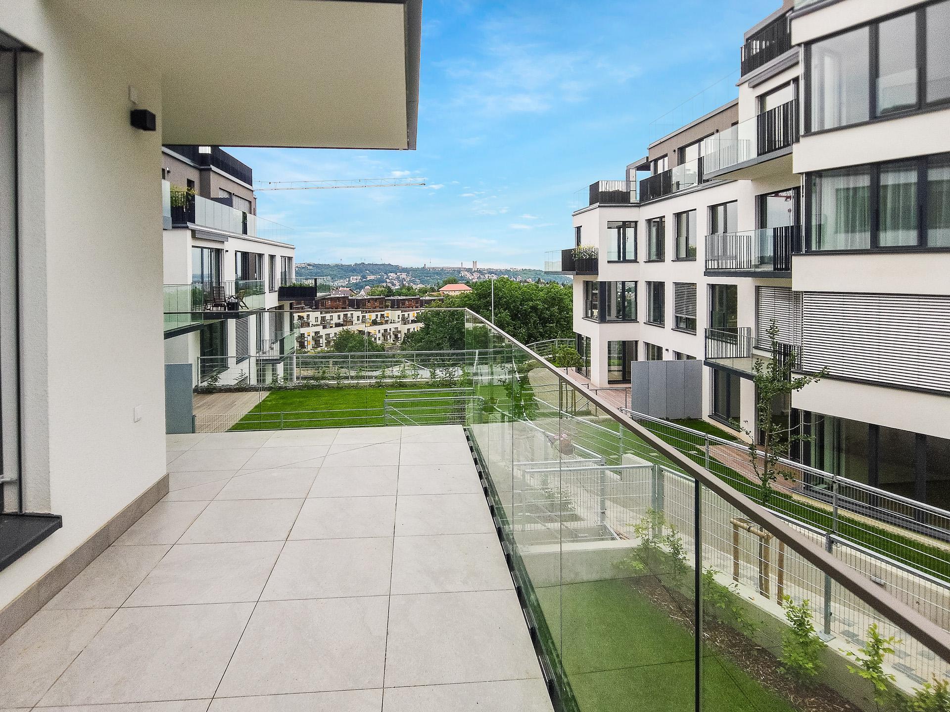 Nabízím k pronájmu nový, prosvětlený a moderní byt v luxusním provedení s panoramatickým výhledem na centrum prahy o celkové uživatelné ploše 112,6 m2 (plocha bytu 93 m² + terasa 20,6 m²) v prémiovém projektu top residence. Byt se nachází v novém bytovém domě v klidné a zelení obklopené rezidenční čtvrti v Praze Košířích (Praha 5) s bezproblémovou dostupností do centra, je umístěn na 2. patře a je orientovaný na jih a východ.