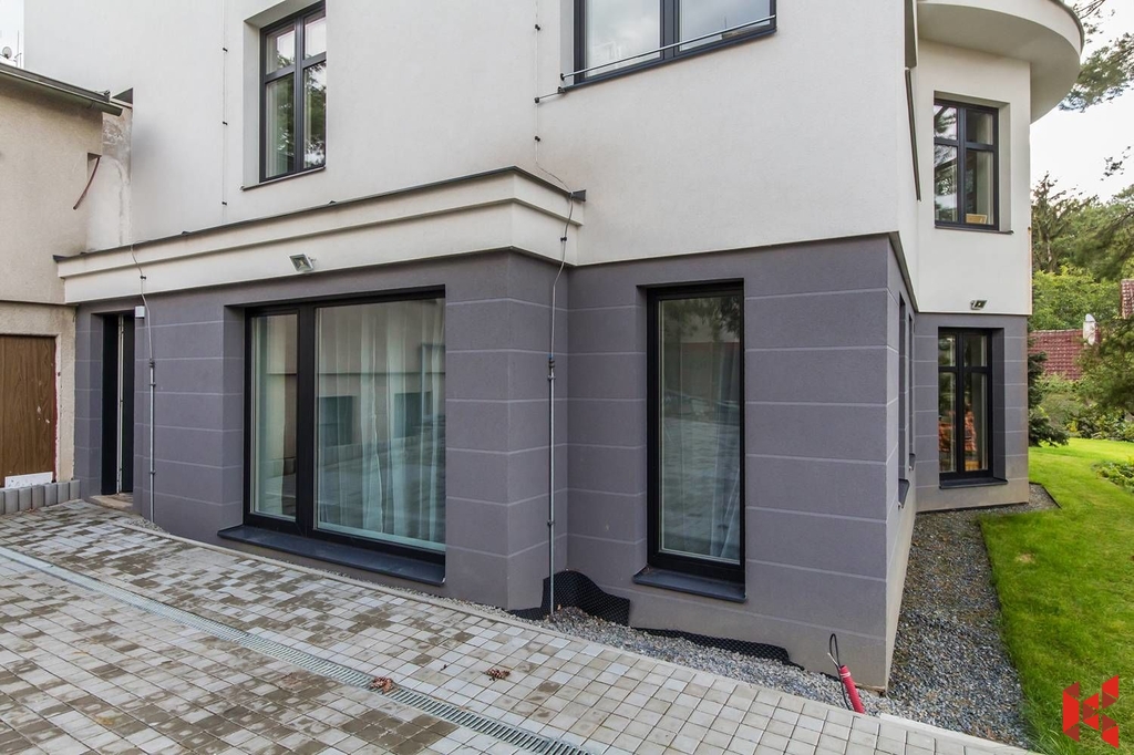 Nová dřevohliníková okna s izolačním trojsklem. Obklady a dlažba v koupelně z mramoru. Plovoucí podlaha. Bezpečnostní vstupní dveře, bezpečnostní skla, vlastní alarm (Jablotron). Vysokorychlostní internet. Možnost parkovacího stání uvnitř objektu (2000,- Kč).