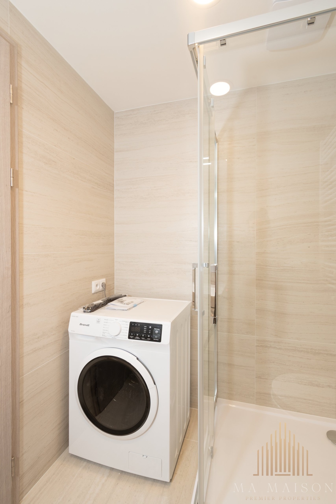 Kuchyňská linka je plně vybavena – k dispozici je varná deska, trouba, mikrovlnná trouba, digestoř, lednice s mrazákem a myčka nádobí. V předsíni se nachází velká vestavná skříň se zrcadly, botník a věšák. V koupelně je pračka.
