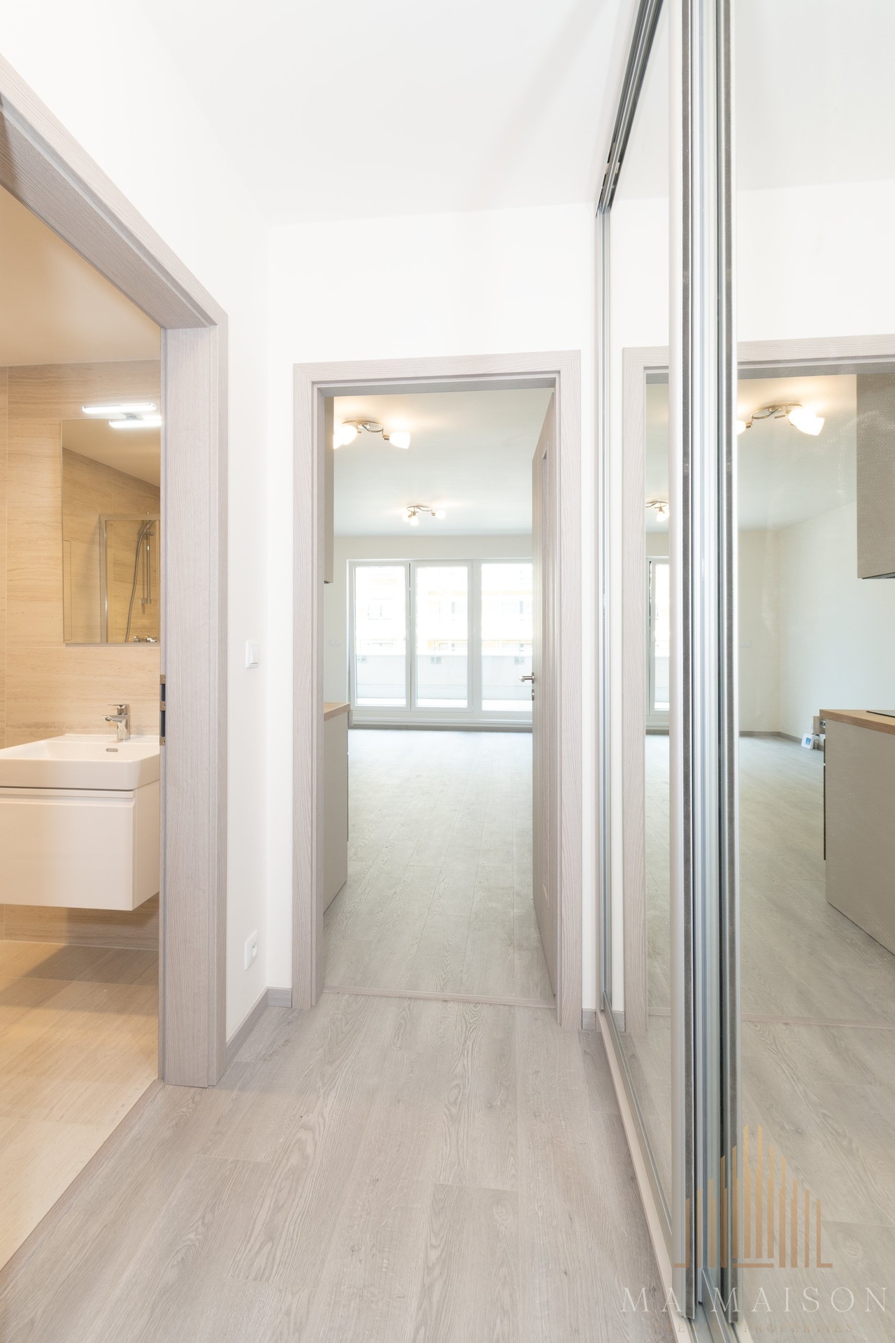 Byt se nachází v novostavbě s výtahem a skládá se ze vstupní předsíně, koupelny se sprchovým koutem a toaletou a hlavního obytného prostoru s kuchyňským koutem a vstupem na balkon. Byt je částečně zařízený a připravený k okamžitému nastěhování.