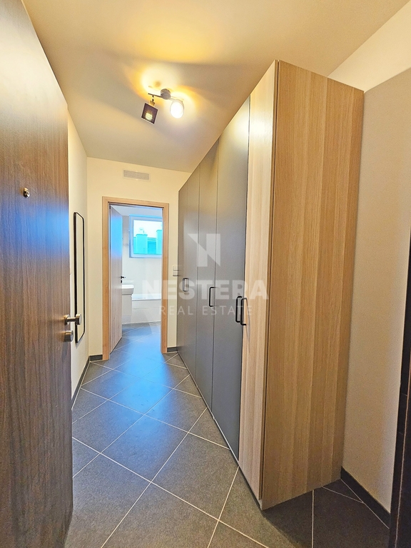 Součástí vybavení bytu jsou předokenní žaluzie a kvalitní nábytek. V koupelně naleznete skříňku pod umyvadlo, skleněnou zábranu u vany, zapuštěné zrcadlo se světlem a další nadstandardní prvky.