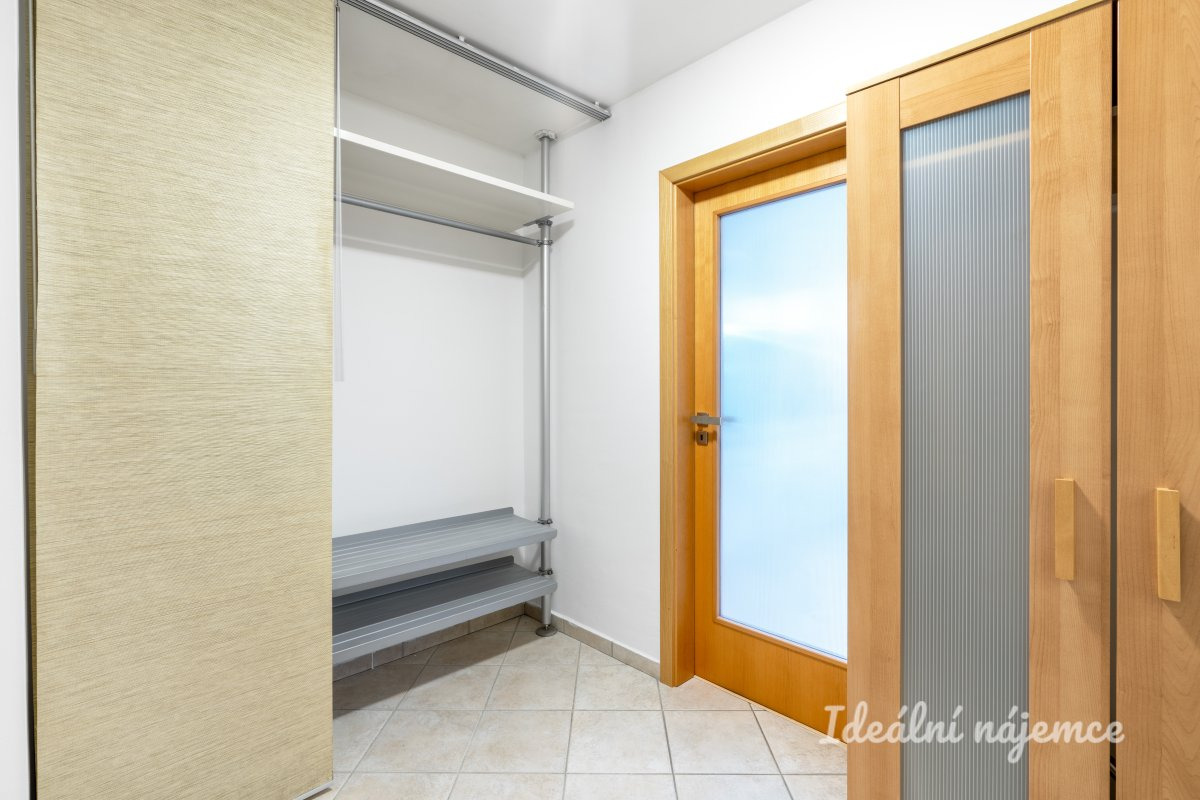 Byt se nabízí plně vybavený. Kuchyňský kout disponuje lednicí s mrazákem, myčkou, elektrickou troubou, varnou deskou a digestoří. Obývací část je zařízena jídelním stolem s židlemi, křeslem, postelí s matrací, lampou a knihovnou. V koupelně je vana, zrcadlo, umyvadlo, koupelnová skříňka, pračka a WC. V předsíni najdeme skříň a úložné prostory. Velkou výhodou bytu je praktická šatna.
