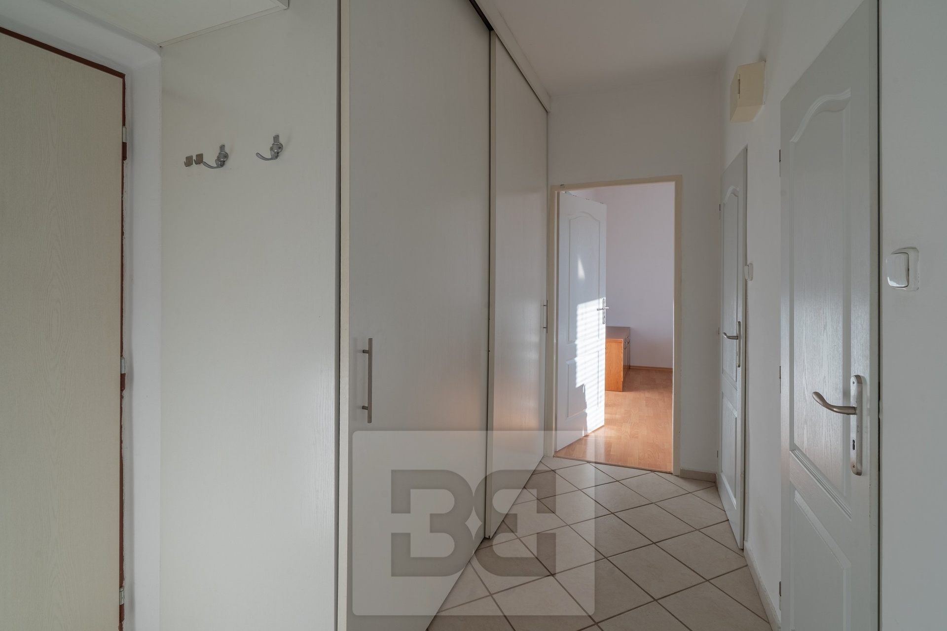 Dispozici bytu tvoří dvě samostatné neprůchozí ložnice, samostatná kuchyně, předsíň, koupelna a toaleta. Ložnice jsou částečně vybavené – v jedné se nachází pohovka, ve druhé postel. V předsíni je k dispozici vestavěná šatní skříň.