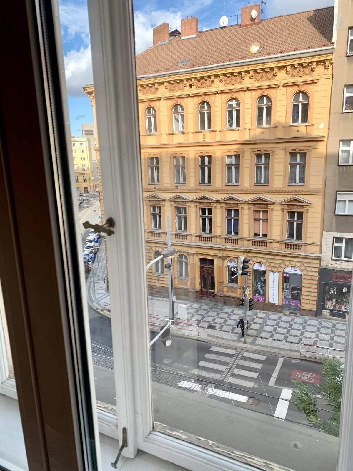 Okna obývací části směřují do ulice Francouzská, která je živější a nabízí veškerou městskou vybavenost doslova u dveří. Díky menším oknům a odhlučněným tramvajovým kolejím je však v bytě hluk výrazně tlumen. Ložnice je orientovaná do klidného vnitrobloku, kde se nachází i balkon, vhodný například na květiny nebo krátké posezení.