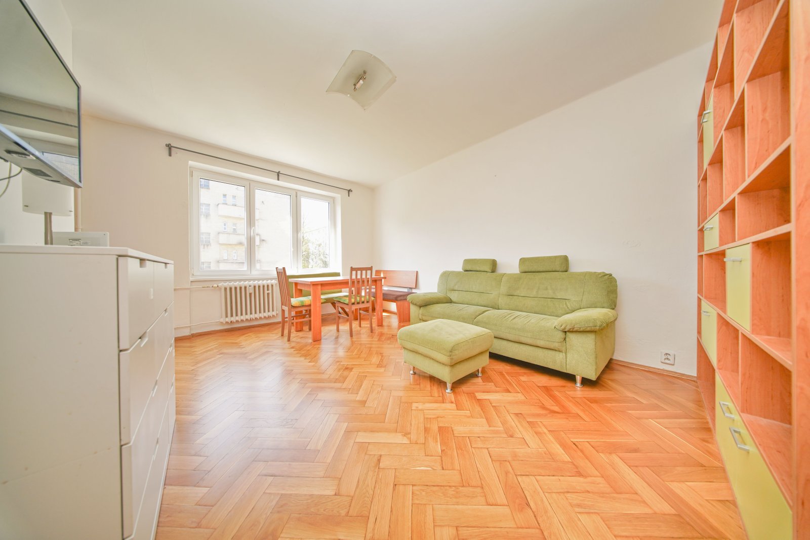 Pronájem pěkného, zařízeného bytu 2+1 51,6 m2 + balkon 1,6 m2 + sklep 1,5 m2, ve 3. podlaží cihlového domu s výtahem, v blízkosti stanice metra Budějovická (6 min. pěšky od domu), Praha 4, ulice Jihlavská. V bytě plastová okna, pěkné repasované dřevěné parkety v pokojích, kuchyně včetně spotřebičů (lednice s mrazákem, trouba, myčka, plynová varná deska a digestoř), koupelna s vanou a pračkou. Samostatná závěsná toaleta. V bytě prostorná komora. V předsíni vestavěná skříň a botník. Zůstane zařízení pokojů viz. foto. Orientace oken na jih do klidné ulice. Objednány okenní žaluzie. Vytápění ústřední z plynové kotelny v domě. Internet optický Vodafone. V místě kompletní občanská vybavenost, skvělá dostupnost a pěkné okolí.