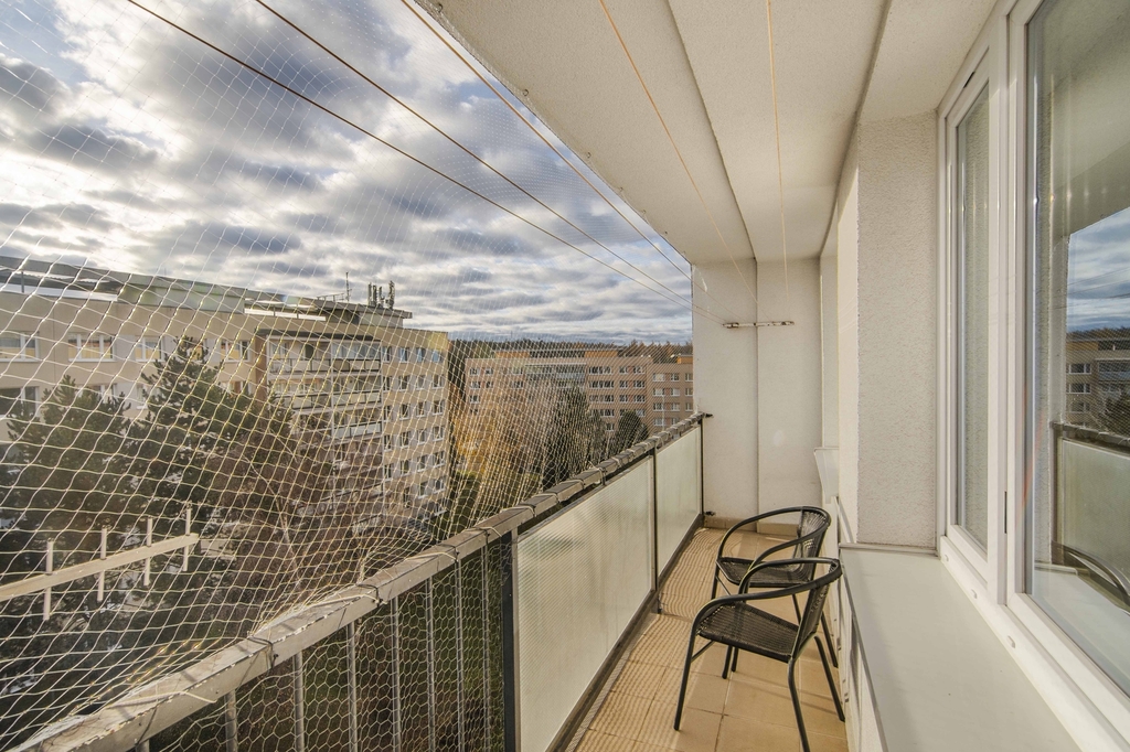 K dlouhodobému pronájmu nabízíme světlý a nově vymalovaný byt 2+kk po rekonstrukci s celkovou podlahovou plochou 46,35 m², z toho užitná plocha činí 39,39 m², lodžie 6,96 m² a vlastní komora na patře. Byt se nachází v 6. podlaží udržovaného panelového domu, jehož energetická třída je C, takže je úsporný. Dispozice bytu je praktická a nabízí dostatek úložného prostoru. Součástí vybavení je kuchyňská linka s plynovým sporákem a elektrickou troubou, lednice, pračka a vestavěná skříň v předsíni. Prostorná lodžie s příjemným výhledem poskytuje ideální místo pro odpočinek.