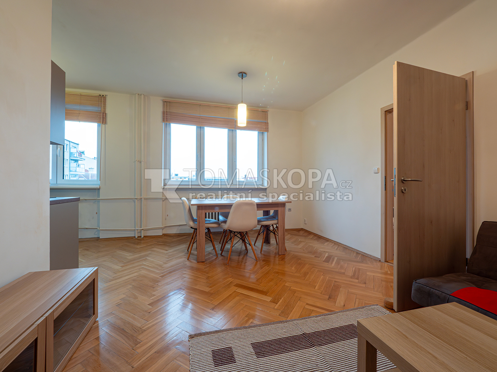 Pronájem zařízeného bytu s dispozicí 2+kk s výměrou 43 m², který je ve 4.patře činžovního domu s výtahem v ul. Argentinská, Praha 7 - Holešovice. Byt sestává z obývacího pokoje s kuchyňským koutem (23,4 m²), kuchyň je vybavena varnou deskou, sporákem, digestoří, myčkou, mikrovlnou troubou a lednicí. Dále je v bytě chodba (2,7 m²), koupelna se sprchovým koutem a pračkou (2,0 m²) a separátní WC (1 m²) Dále je v bytě pokoj (11,0 m²) s manželskou postelí a vestavěnou skříní. Všechna okna bytu směřují pouze do vnitrobloku, jedná se o tichý byt.