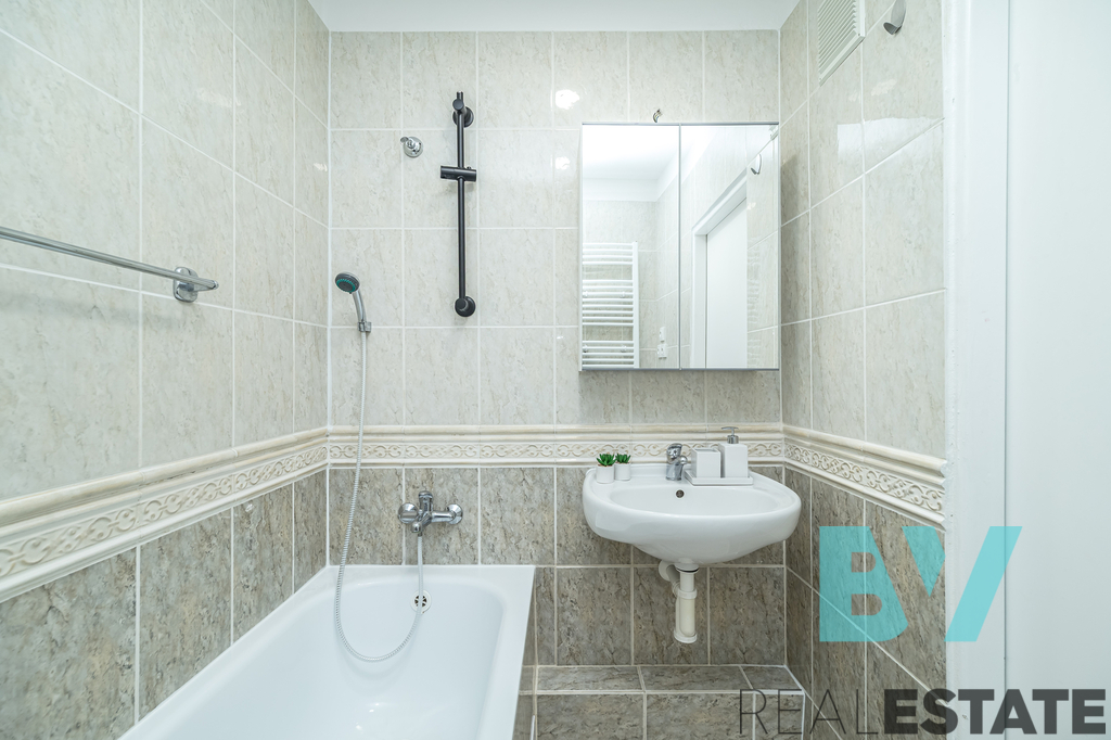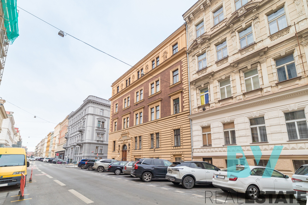Pronájem světlého bytu 2+kk o výměře 42 m² ve 3. patře udržovaného cihlového domu s výtahem v ulici Zborovská na Smíchově. Reprezentativní secesní dům na rohu ulic, jen pár minut chůze od Anděla a Vltavy.