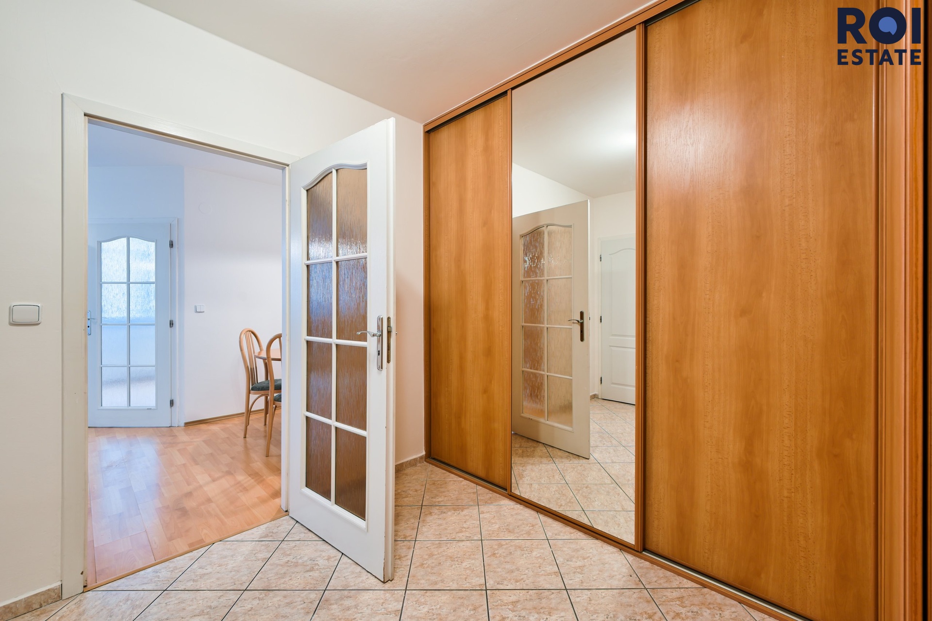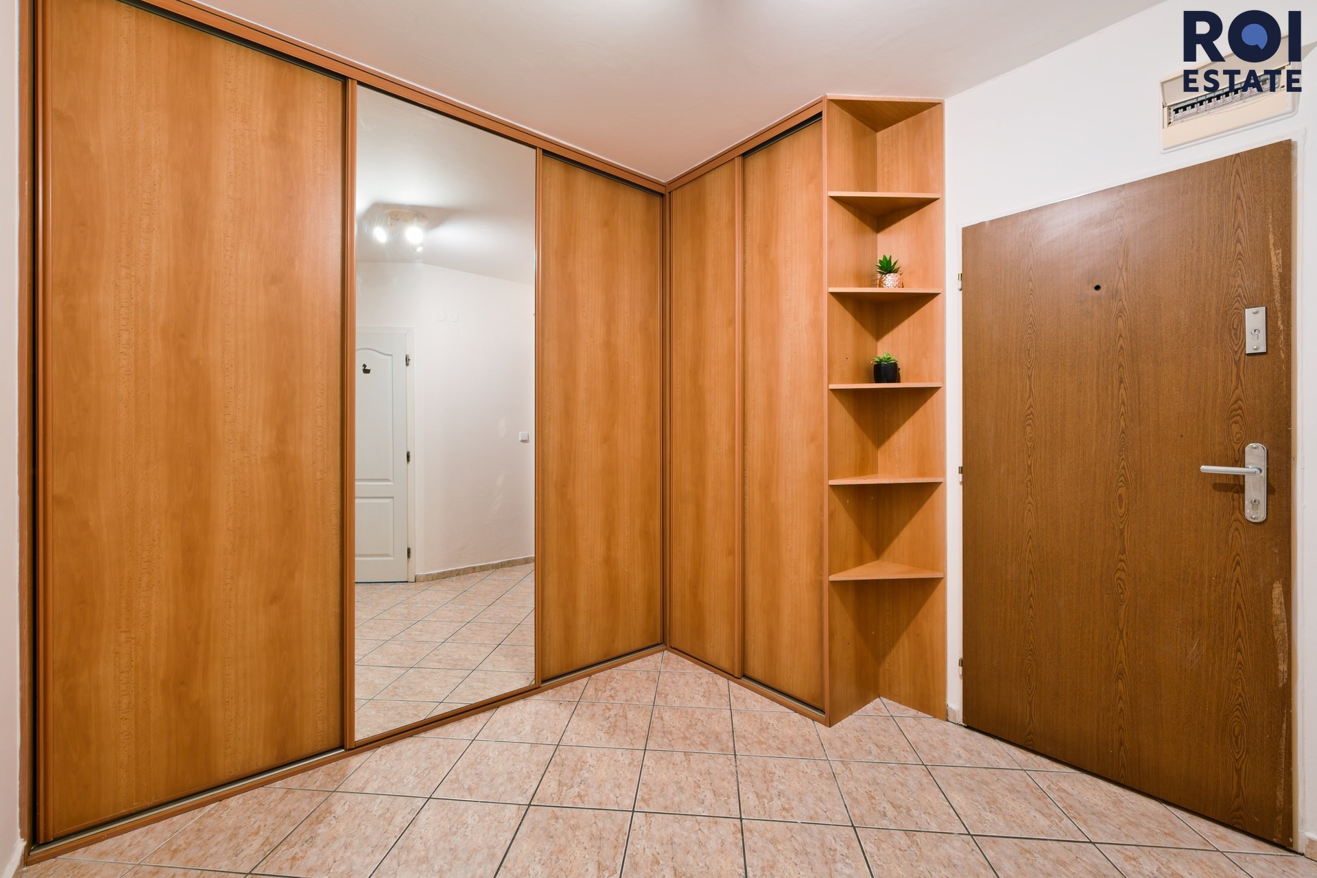 • Předsíň: Prostorná rohová vestavěná skříň se zrcadlem pro dostatek úložného prostoru.