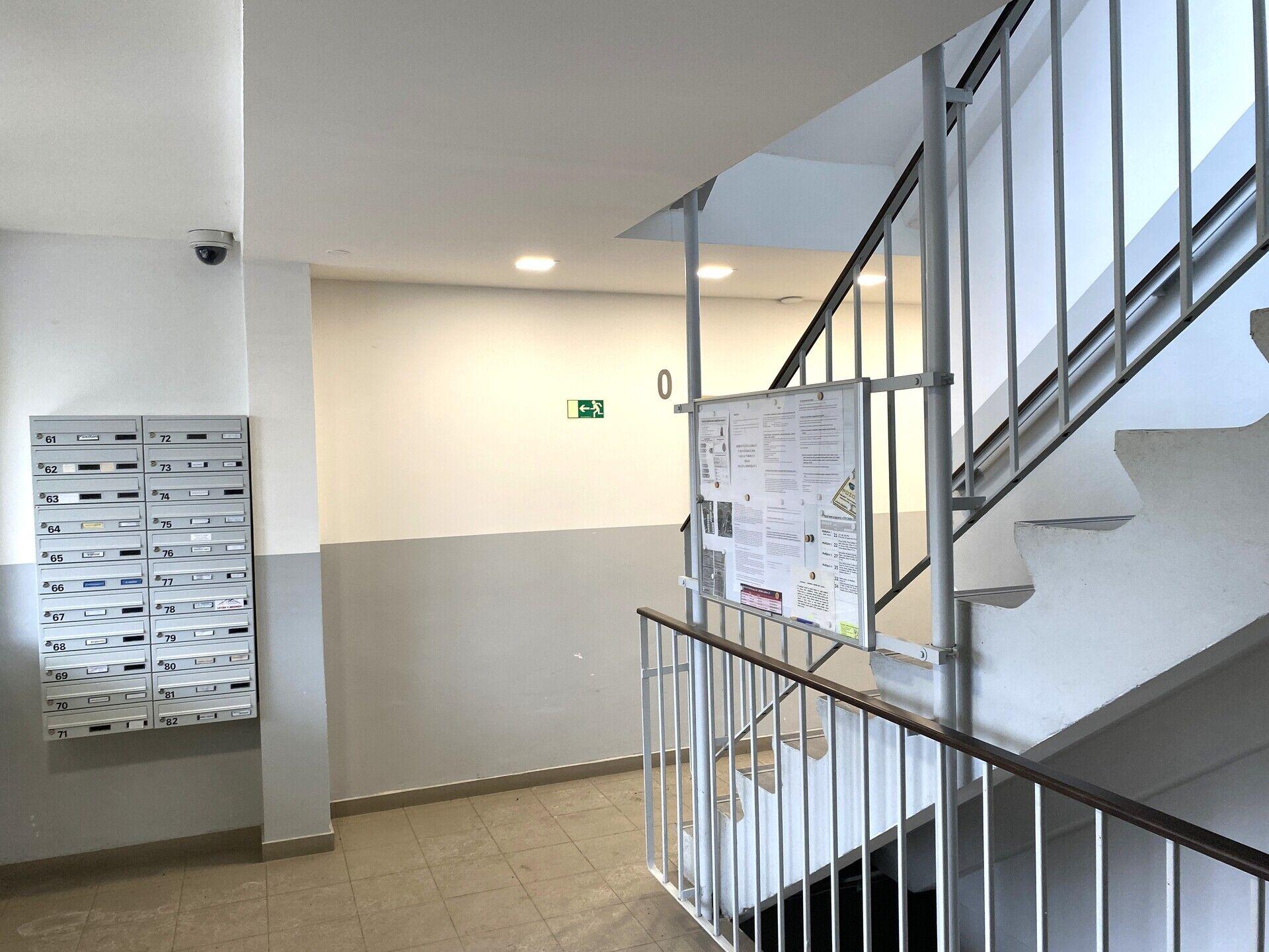 Vstup do bytu je přes chodbu, kde jsou další dveře. Tím je zajištěno bezpečí a soukromí.