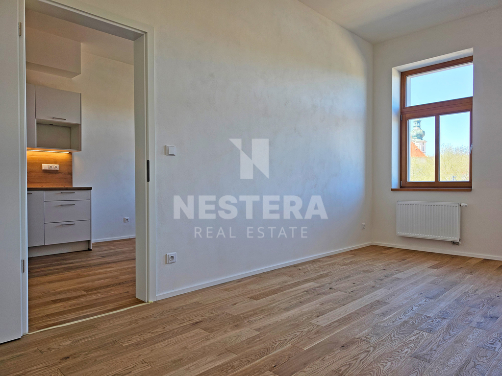Obývací pokoj a ložnice nabízí výhled přímo na Břevnovský klášter. Součástí nejbližšího okolí domu je veškerá občanská vybavenost.