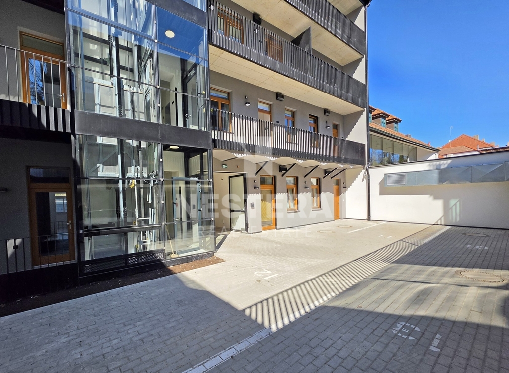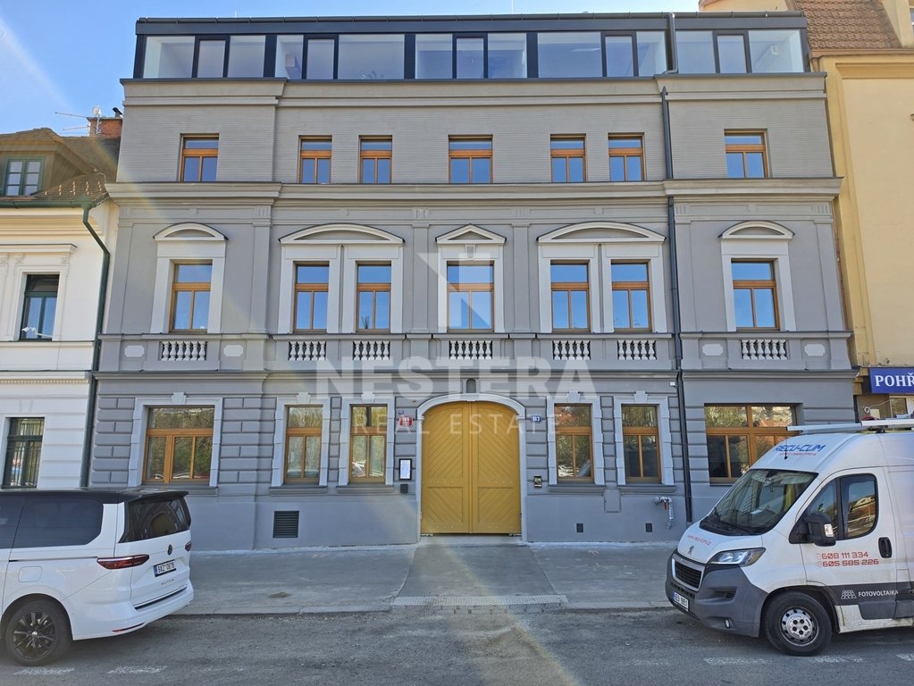 Součástí pronájmu je také garážové stání ve vnitrobloku domu a sklep o velikosti cca. 2 m2.