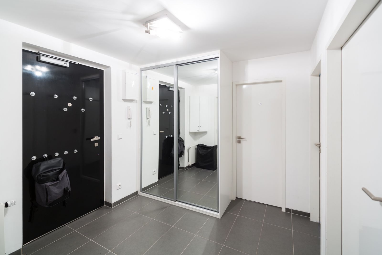 Bezpečnostní dveře, vestavěné skříně, závěsy, záclony, myčka, TV, DVD, UPC, domácí vrátný, velký sklep, výtah. Garážové stání v ceně nájmu.