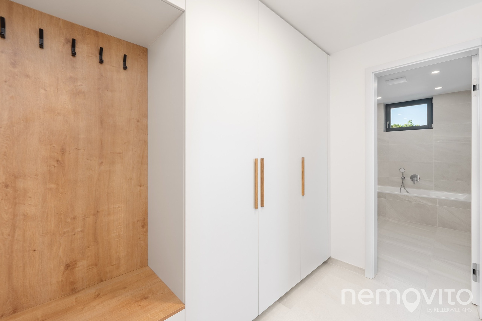 V předsíni a v ložnici je k dispozici velká vestavěná skříň a k uložení věcí je zde i praktická komora 3,5 m². Koupelna s vanou je společná s toaletou a nechybí zde ani příprava pro umístění pračky a otopný žebřík.