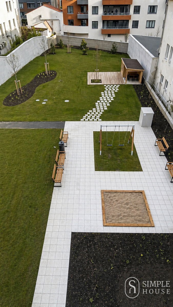 Byt se nachází v menším bytovém domě s malým počtem jednotek a je orientován na východ do klidného vnitrobloku se zahradou. K bytu náleží balkon a sklep. Obyvatelé domu mohou využívat také soukromou zahradu s dětským hřištěm, terasou, altánem, zahradním vybavením a vzrostlou zelení.