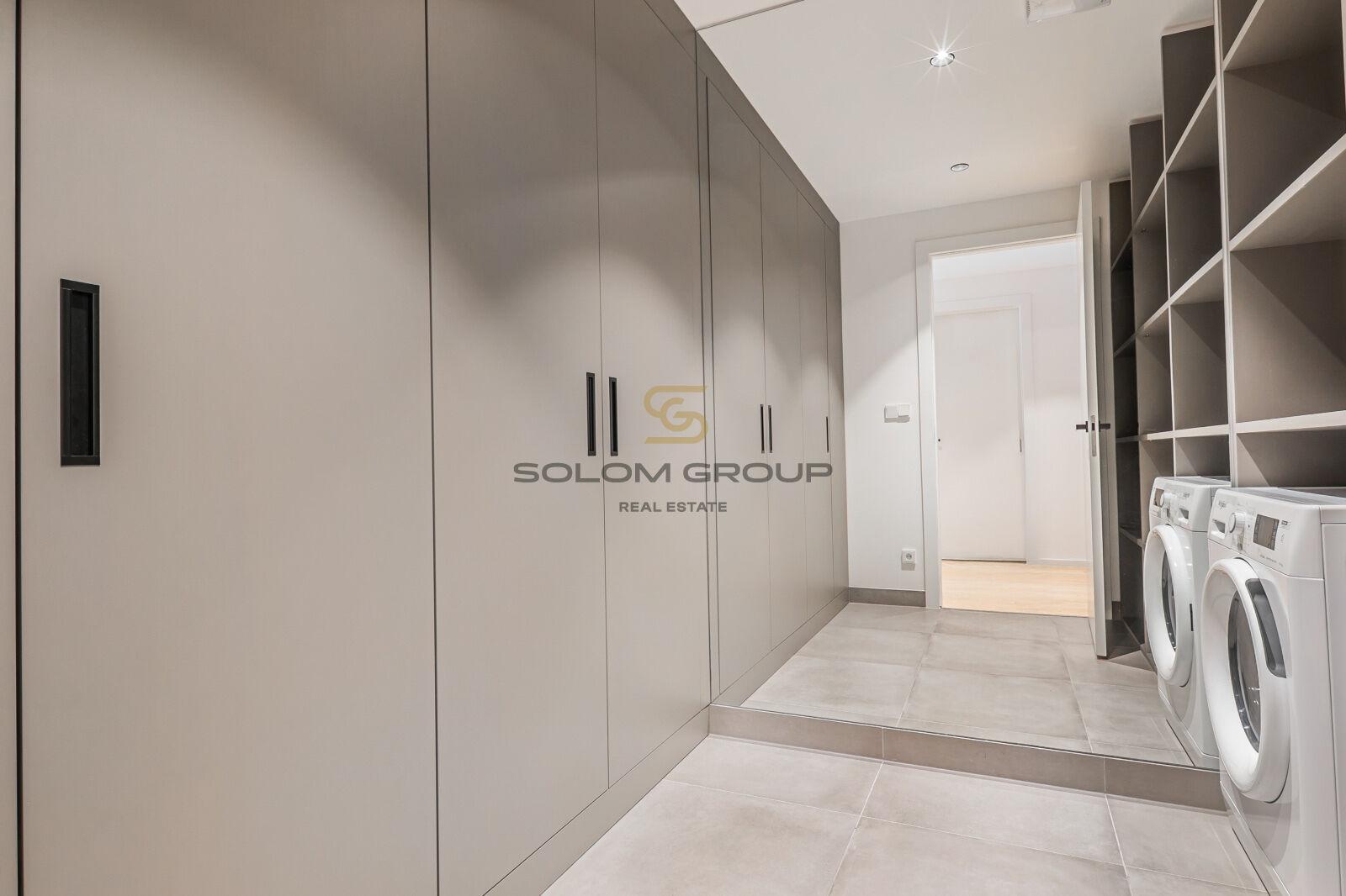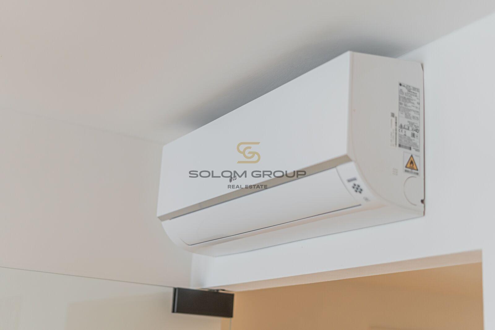 V bytě je kuchyňská linka vč. vestavěných spotřebičů - sklokeramická deska, horkovzdušná trouba, odsavač par, mikrovlnka, myčka, lednice s mrazákem a jídelní stůl s židlemi. V obývací částí je umístěna sedací souprava, konferenční stolky, Samsung SmartTV a klimatizační jednotka. Koupelna je vybavena vanou a toaletou. V ložnici je manželská postel, vestavěné skříně a klimatizační jednotka. Součástí bytu je také šatna s vestavěnými skříněmi a kombinovanou pračkou se sušičkou.