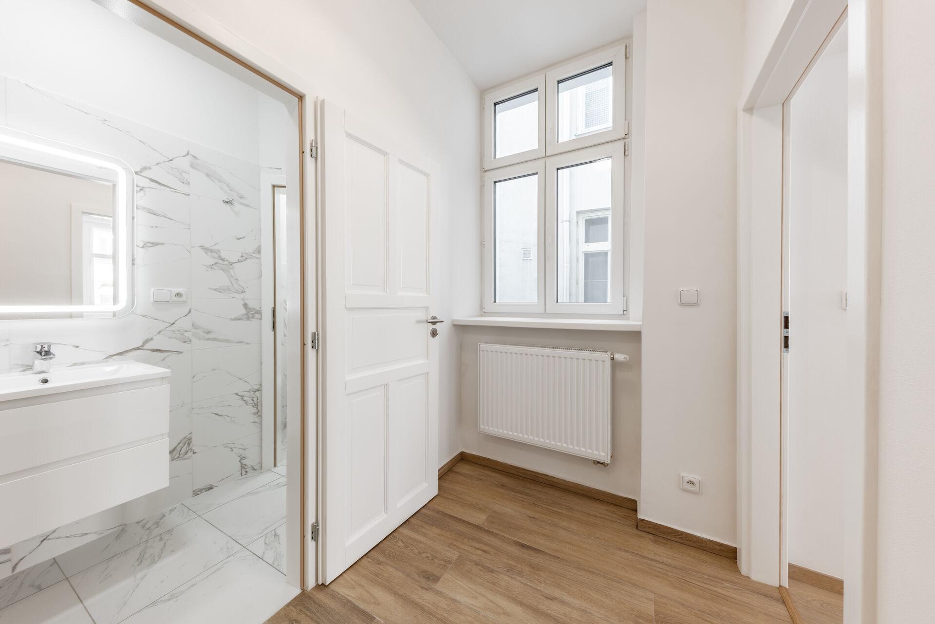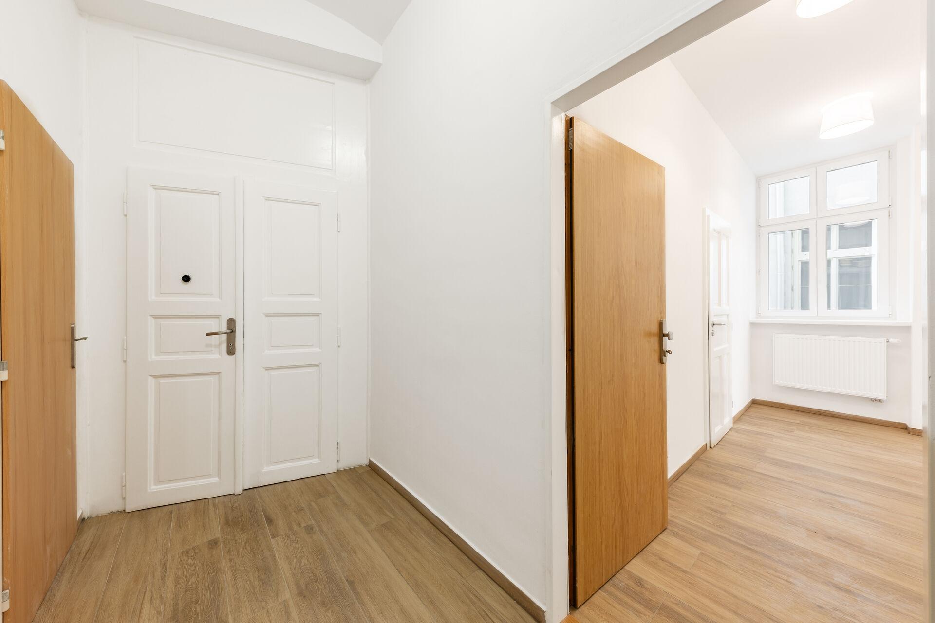 Nabízíme k pronájmu krásný, kompletně zrekonstruovaný byt 2+kk o velikosti 62,21 m², umístěný v 3. NP činžovního domu bez výtahu v srdci Prahy 3, na Žižkově v ulici Štítného. Byt se skládá z předsíně, koupelny, toalety, technické místnosti, ložnice a pokoje s kuchyňským koutem. Dále k bytu náleží prostorná komora, která je přístupná ze společné vstupní chodby. V koupelně se nachází sprchový kout a umyvadlo se skříňkou. Dalšími dveřmi se vstupuje na toaletu. V technické místnosti je kondenzační plynový kotel, který zajišťuje jak ohřev teplé vody, tak topení a příprava na pračku. Součástí hlavního pokoje je kuchyňský kout s plně vybavenou moderní kuchyňskou linkou (myčka, indukční varná deska, trouba, digestoř s odtahem, mikrovlnná trouba a lednice s mrazákem), která nabízí dostatek úložného prostoru. Byt je orientován do ulice Štítného. Společné prostory domu taktéž prošly důkladnou obnovou, a to včetně všech inženýrských sítí a dům v současnosti nabízí klidné a reprezentativní bydlení.