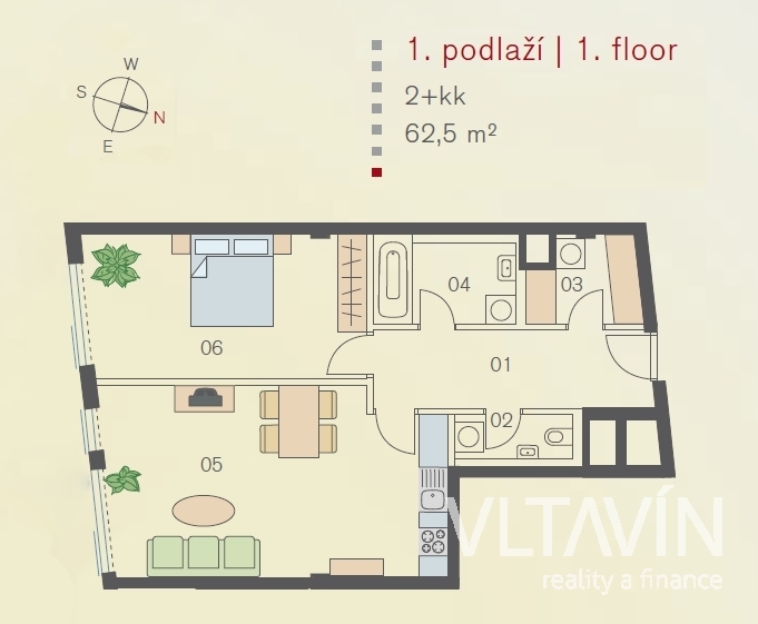 | Dispozice/podlahová plocha: | 2+kk/62 m² |