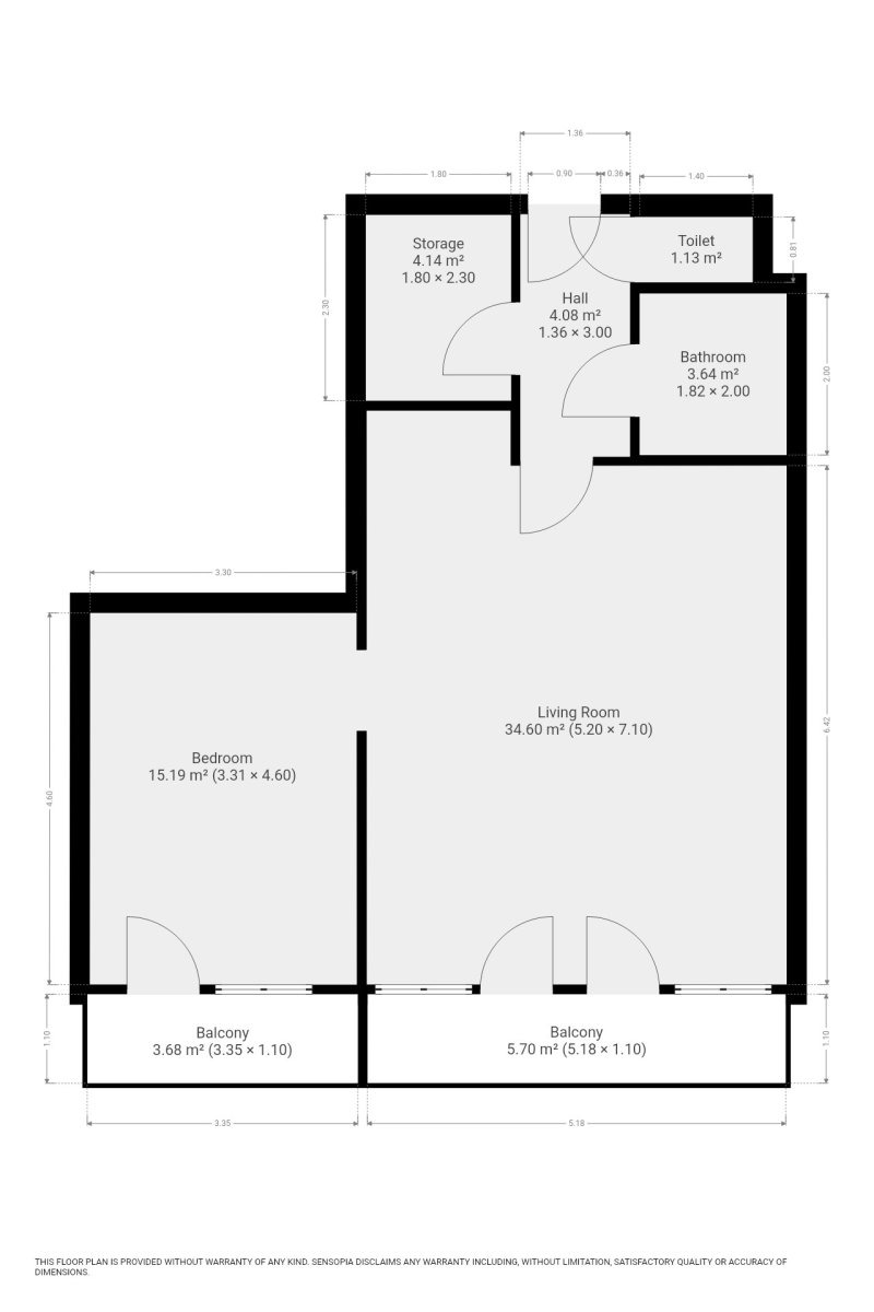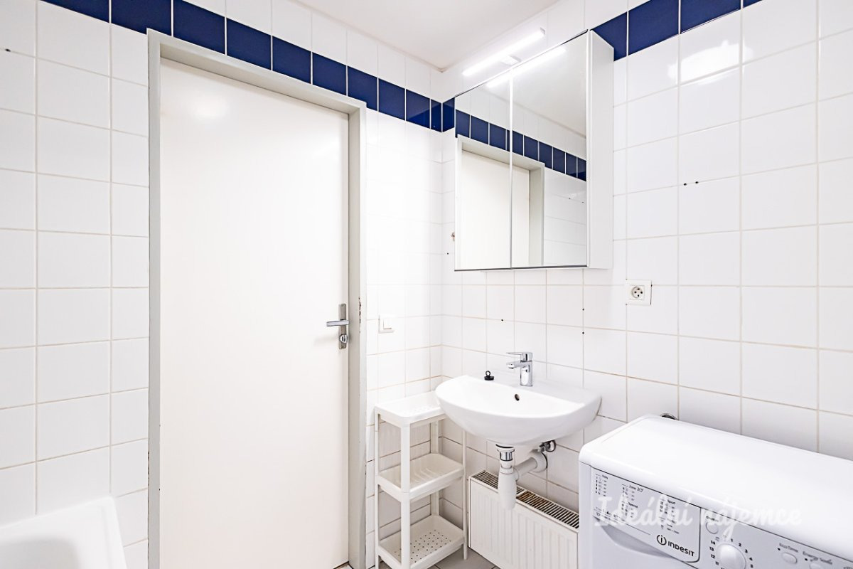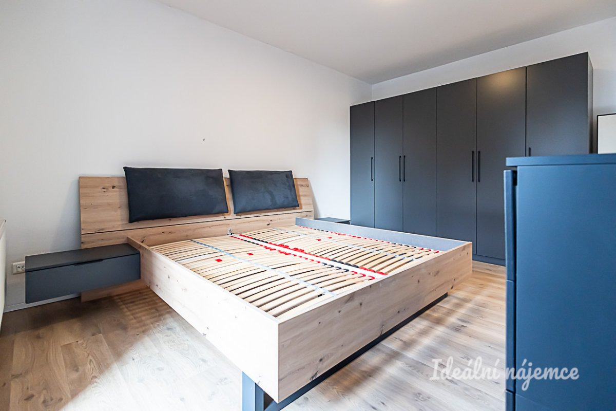 Samostatný pokoj je vybaven manželskou postelí, úložným prostorem a také přímým vstupem na balkon. Koupelna disponuje vanou, umyvadlem a pračkou, toaleta je umístěna samostatně. Součástí bytu je rovněž praktická úložná místnost.