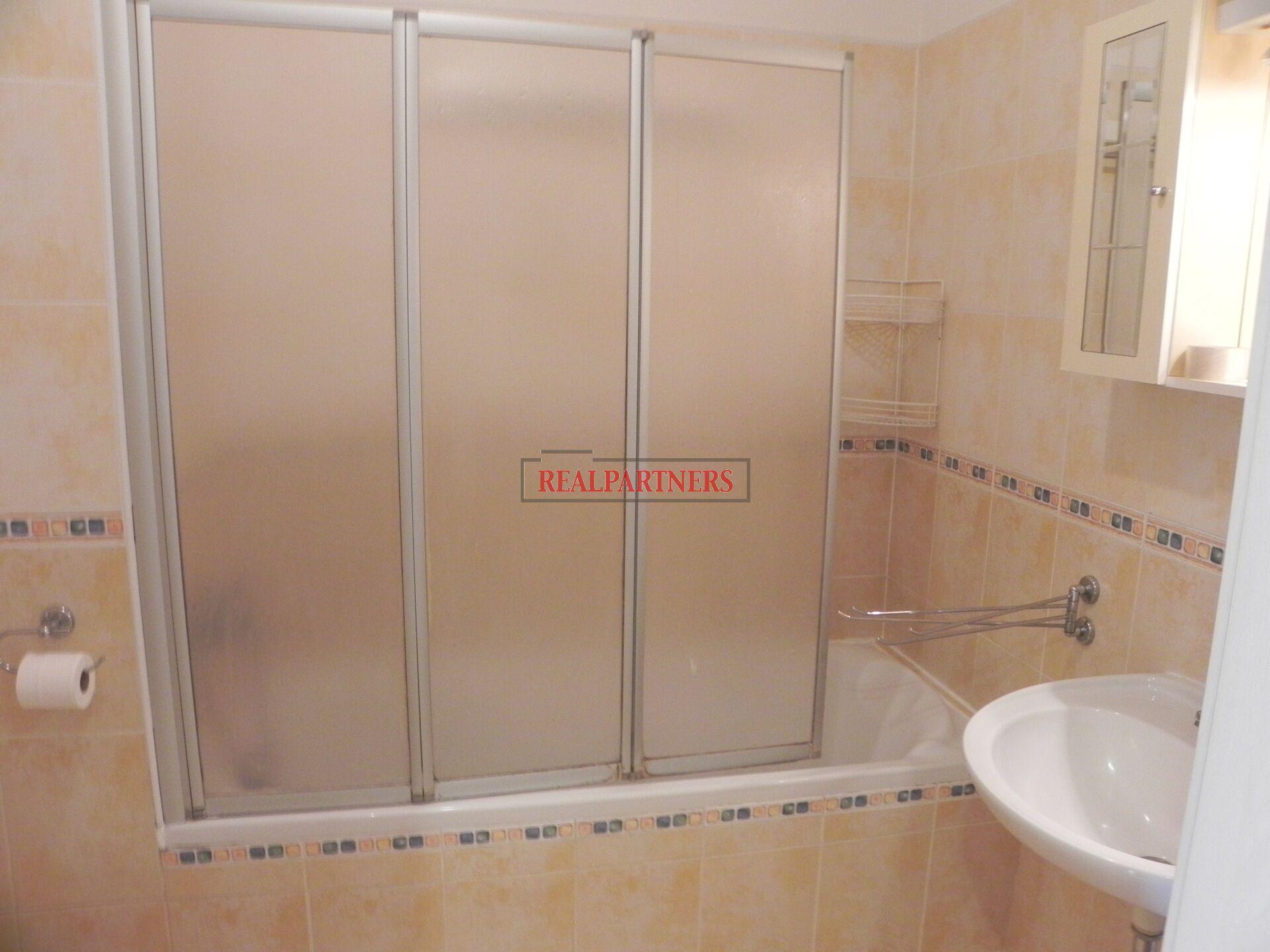 Z chodby vstup do obývacího pokoje, ložnice, zděny koupelny s vanou (přehrádka na sprchovaní), umyvadlem, toaletou a pračkou.
