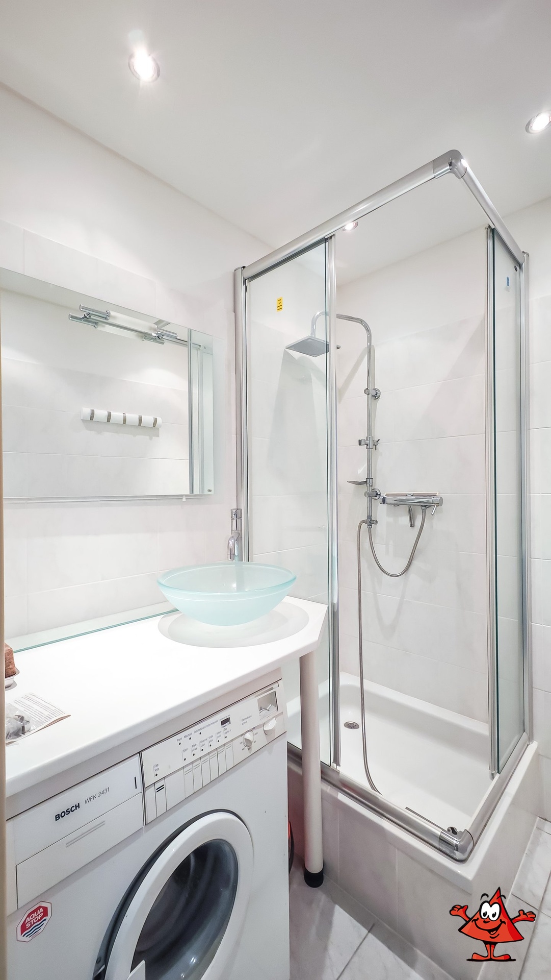 Kuchyňská linka osazena myčkou, sklokeramickou deskou a digestoří, vestavěná trouba a lednička v kuchyni nejsou. Na oknech žaluzie, vybaveno starším zachovalým nábytkem, v koupelně pračka, v předsíni vestavěná šatní skříň, dveře bezpečnostní. Byt je vhodný pro 2 osoby.