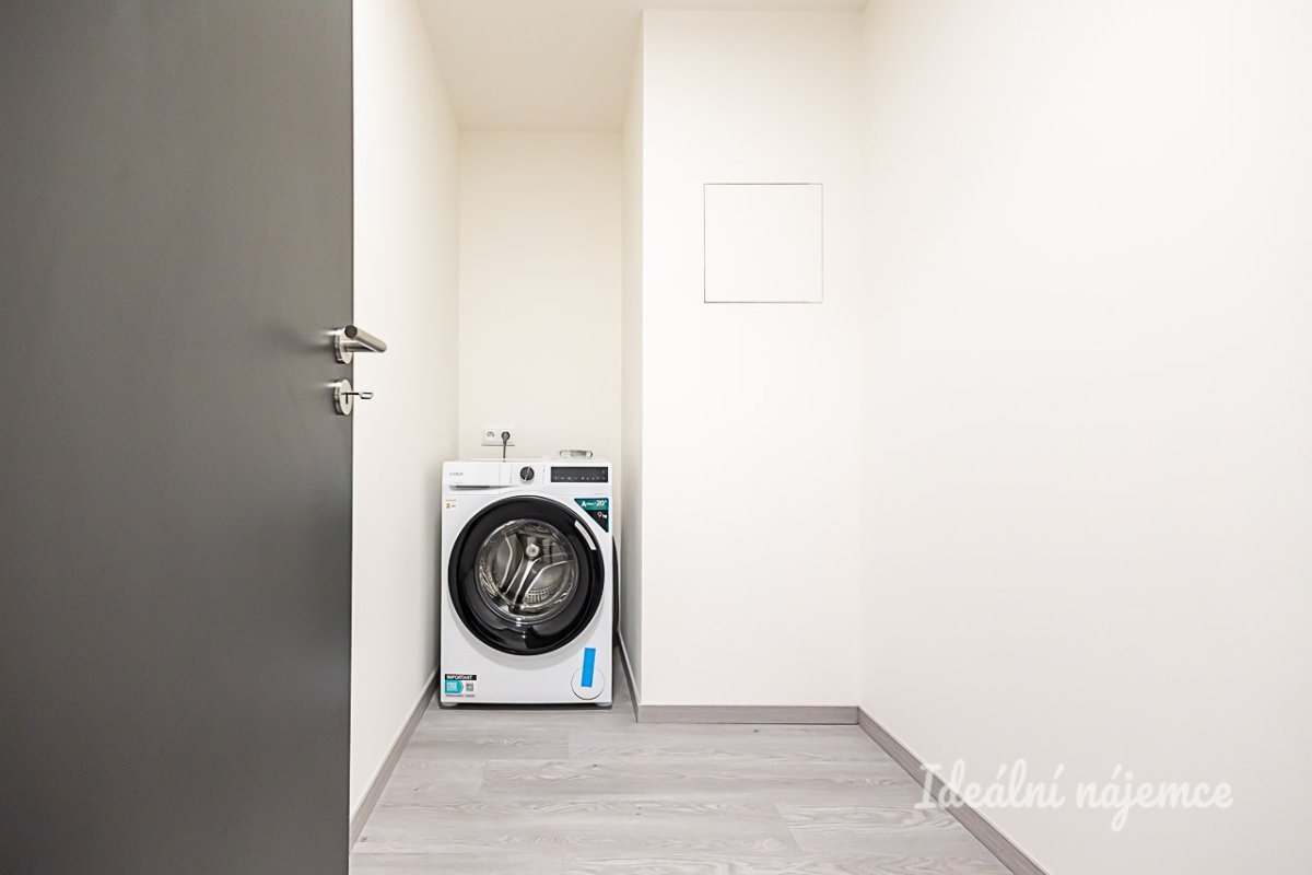 Interiér je nabízen jako nezařízený, což vám otevírá prostor pro realizaci vlastních představ o ideálním domově. Srdcem bytu je prostorný obývací pokoj s dostatkem přirozeného světla, který volně navazuje na moderní kuchyňský kout. Ten je kompletně vybaven kvalitními spotřebiči včetně lednice s mrazákem, elektrické a mikrovlnné trouby, varné desky, myčky a digestoře. Druhý, samostatný pokoj nabízí variabilní využití jako ložnice, dětský pokoj nebo klidná pracovna. Koupelna disponuje vanou, umyvadlem se skříňkou a toaletou, přičemž v bytě naleznete i praktickou technickou místnost s pračkou, která skvěle poslouží jako komora či sušárna.