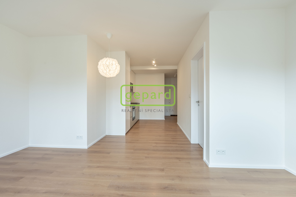 Byt je tvořen vstupní předsíní, obývacím pokojem s kuchyňským koutem, ložnicí se vstupem na uzavřenou terasu a dále prostornou koupelnou se sprchou a WC. Obývací pokoj je vybaven kvalitní kuchyňskou linkou s vestavěnými spotřebiči (horkovzdušná trouba, digestoř, lednice s mrazákem, myčka, mikrovlnná trouba). Podlaha - Vinylové velkoformátové vlysy a dlažba. K vybavení dále patří designové osvětlení, předokenní žaluzie. Komunikaci s návštěvami zajišťuje videotelefon. Výhodou je vlastní plynová kotelna v suterénu domu s nízkými náklady na vytápění a ohřev vody. K bytu je možné si dále pronajmout sklep (+500 Kč/měs) či parkovací stání na pozemku u domu (1000,- Kč/měs).