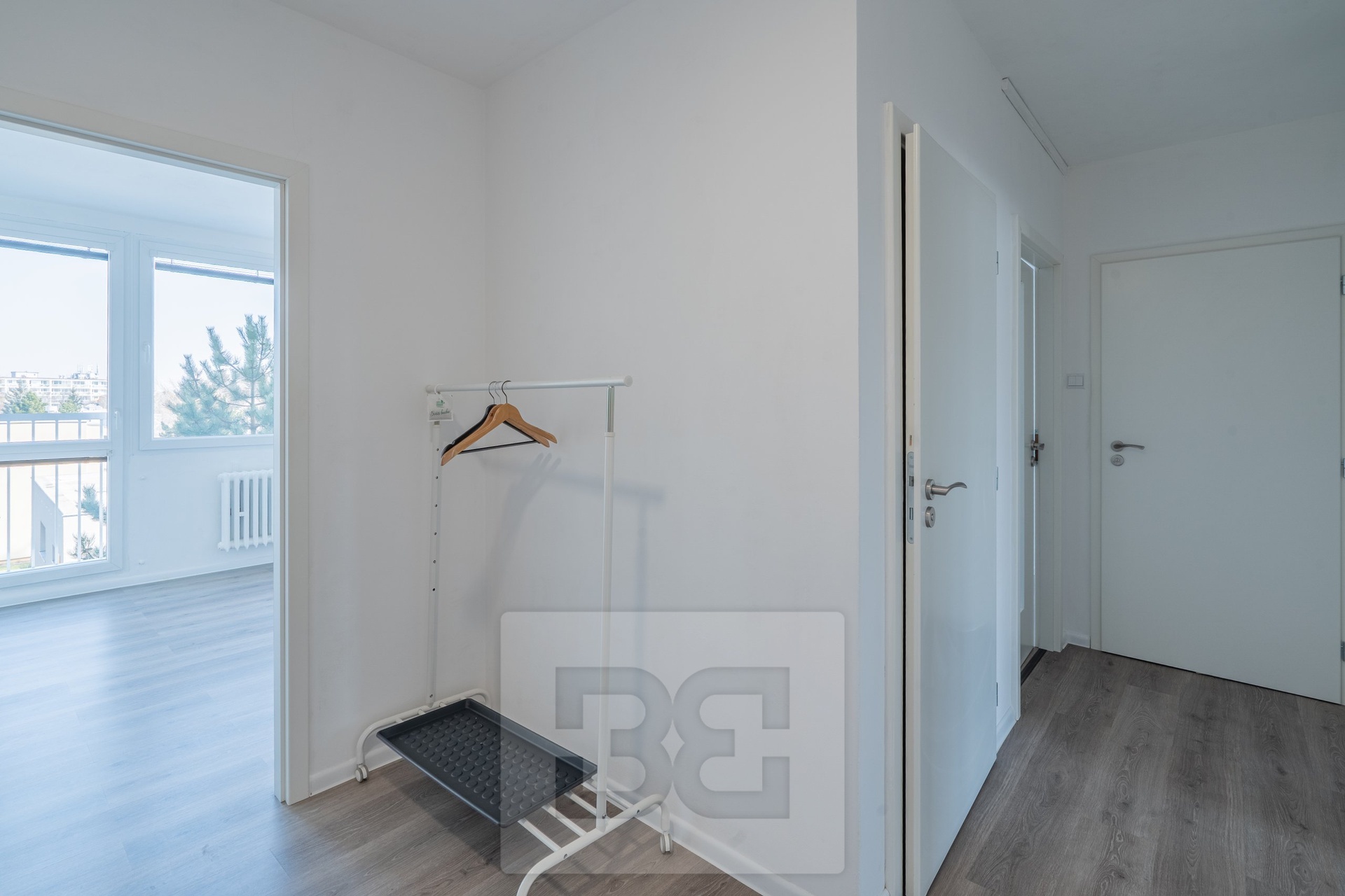 Dispozici bytu tvoří obývací pokoj se vstupem na balkon, samostatná a plně vybavená kuchyně, dvě neprůchozí ložnice a praktická komora/šatna. Balkon orientovaný západ s výhledem do parku.
