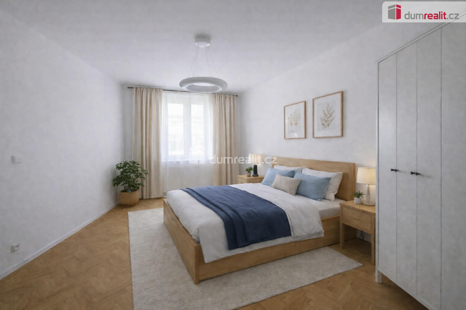 Dispozičně byt nabízí prostornou vstupní chodbu, obývací pokoj se vstupem do jedné z ložnic a další samostatnou ložnici, která je průchozí z koupelny. Koupelna a toaleta jsou oddělené, což zvyšuje komfort bydlení. Byt je díky své orientaci a umístění ve vyšším patře velmi světlý a vzdušný.
