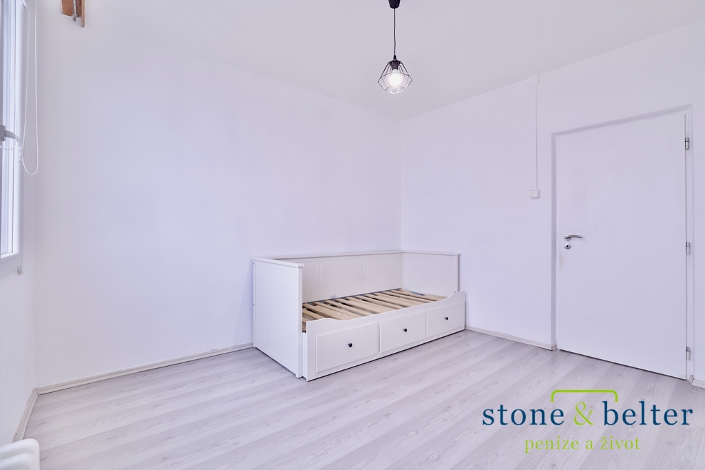 Dispozice zahrnuje tři samostatné NEPRŮCHOZÍ pokoje, kuchyň s jídelním koutem, prostornou chodbu s vestavnými skříněmi, koupelnu s vanou a samostatné WC.