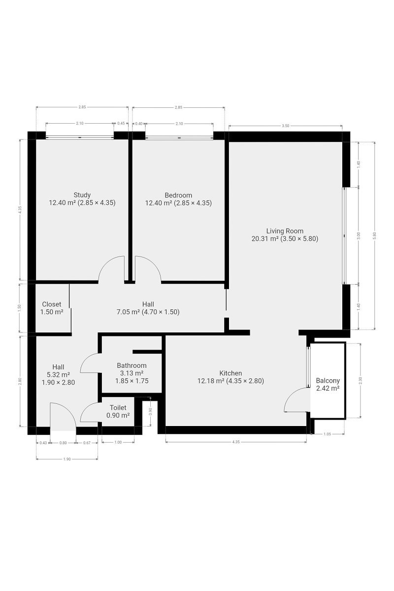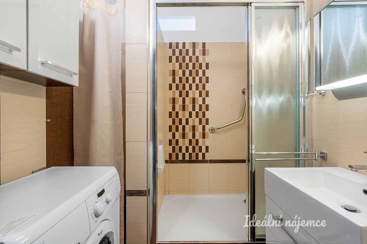 Obývací pokoj je částečně vybaven a je klimatizován z tohoto pokoje lze vstoupit na balkon. Druhý pokoj, který lze využít jako ložnici či pracovnu, je rovněž částečně zařízen – najdete zde šatní skříň a police pro uskladnění věcí. V ložnici je manželská postel a prostorná šatní skříň. Koupelna je kompletně vybavena – prostorných sprchovým koutem a koupelnovou skříňkou, umístěnou nad umyvadlem, součástí je i pračka. Toaleta se nachází odděleně. Na chodbě bytu se nachází další praktický úložný prostor, který ocení každý nájemce.