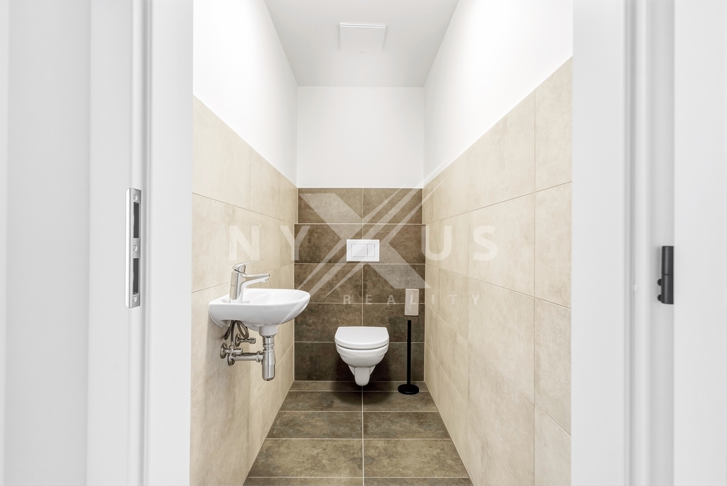 V bytě je podlahové vytápění v koupelně a na toaletě, a zvyšuje tak komfort bydlení. Součástí je také příprava pro instalaci klimatizace a venkovních žaluzií, což umožňuje další úpravy dle potřeb nájemníka. K bytu náleží velkorysý sklep a garážové stání v domě.