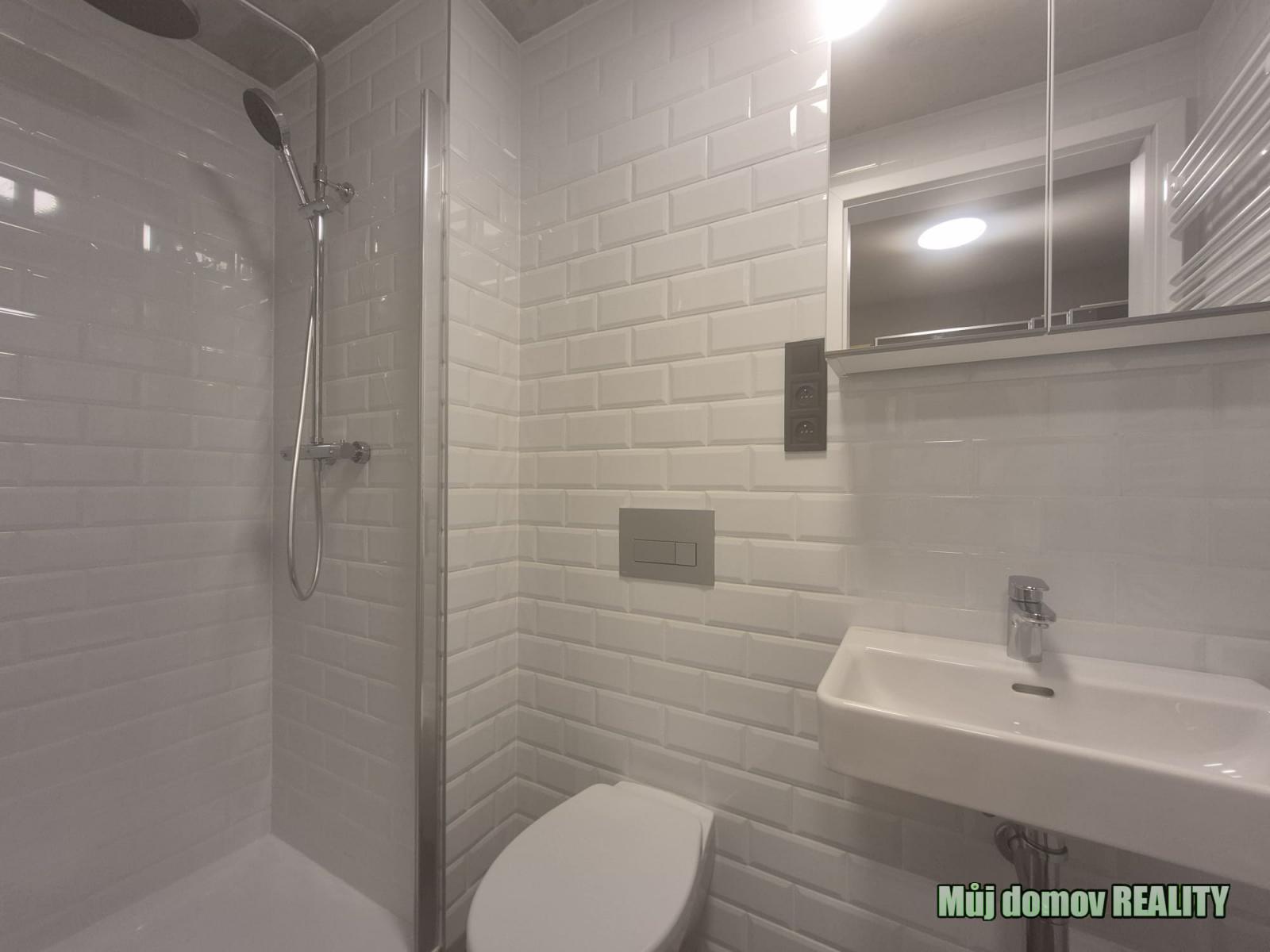koupelna se sprchovým koutem, toaletou a umyvadlem