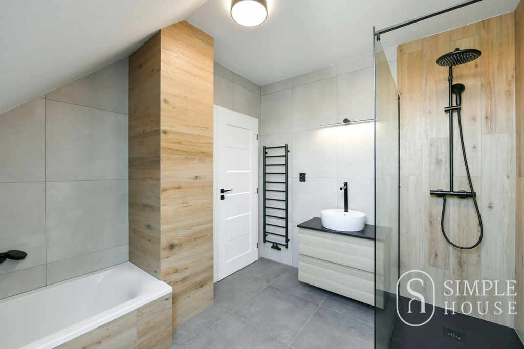 Dominantou spodního podlaží je prostorný obývací pokoj s plně vybavenou kuchyní a jídelní částí, který poskytuje dostatek prostoru pro každodenní život i společná setkání. V této úrovni se nachází také vstupní chodba a samostatná toaleta.