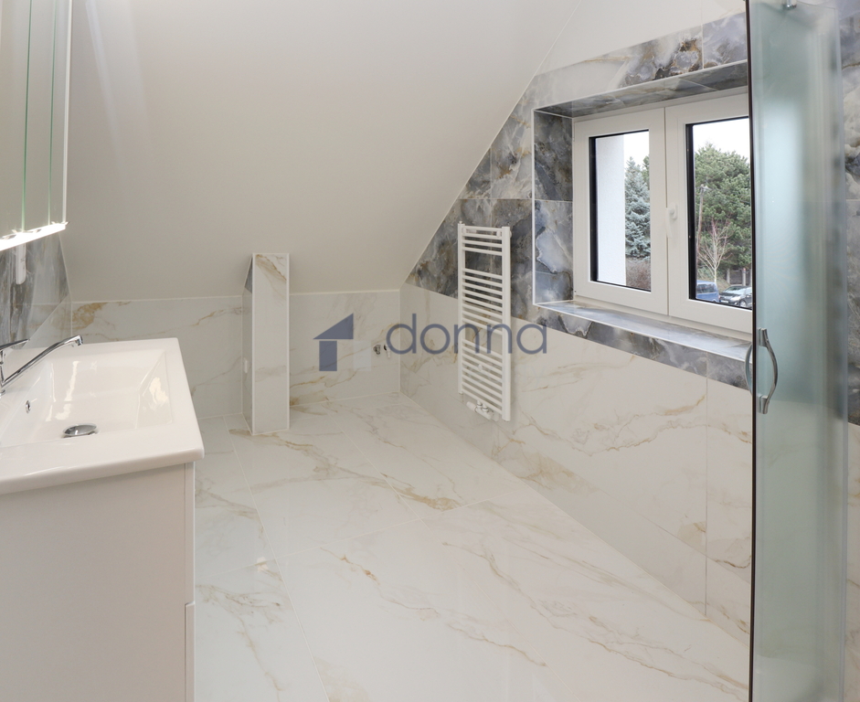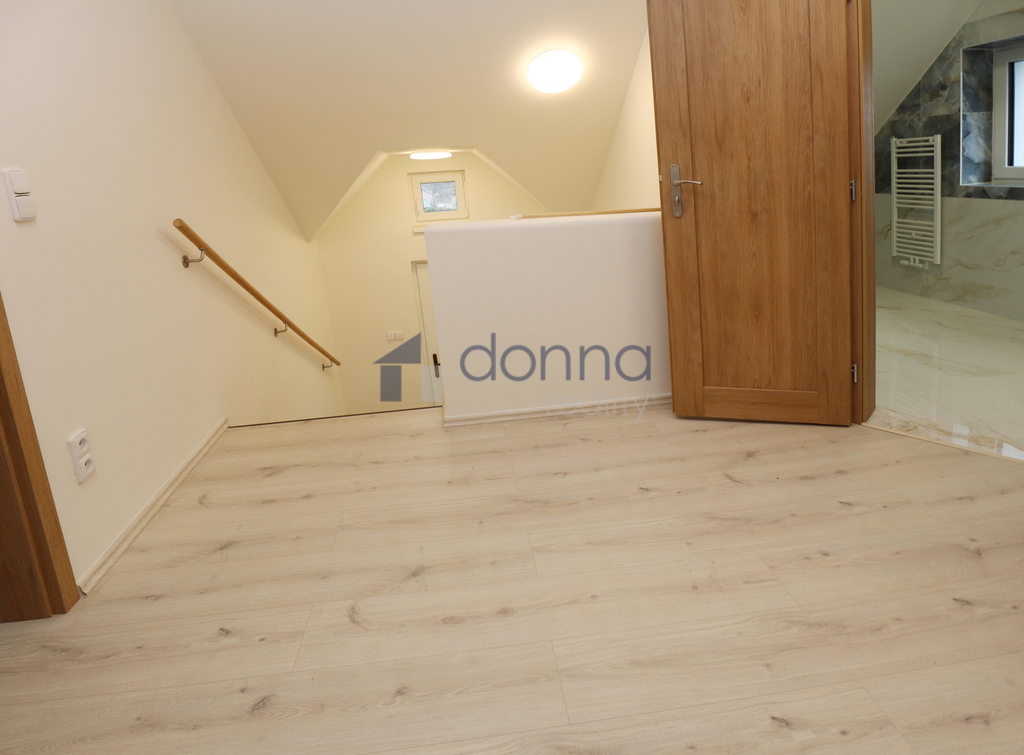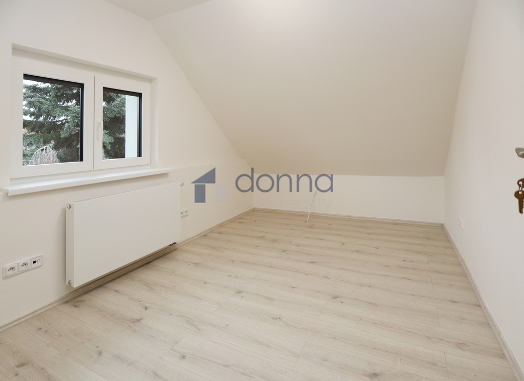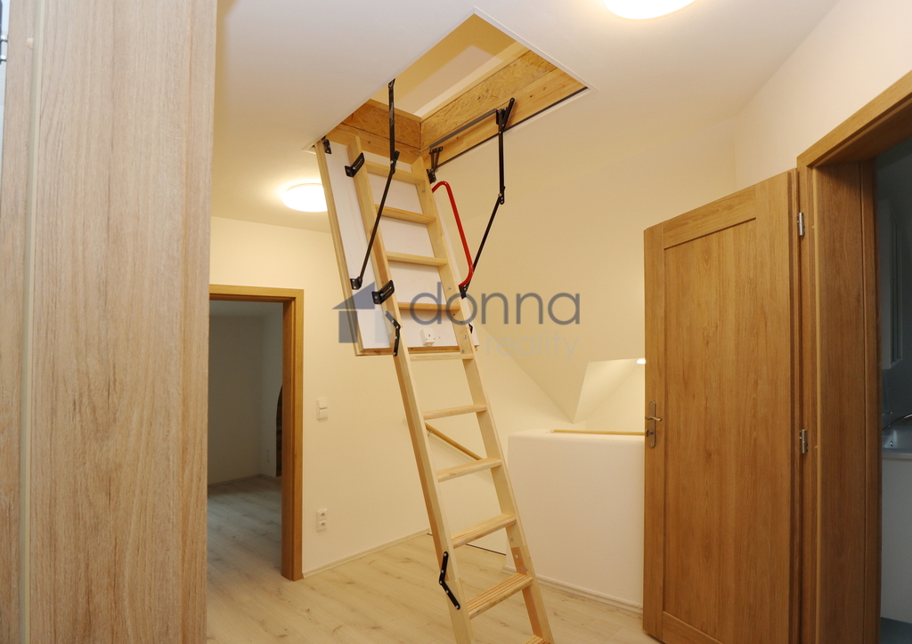 Nabízíme pronájem nově zrekonstruovaného podkrovního bytu s dispozicí 4+kk, plocha 71m2 + podkroví 23m2, s předzahrádkou 63m2, v 1. patře rodinného domu, ulice V Nových Bohnicích, Praha 8 - Bohnice.