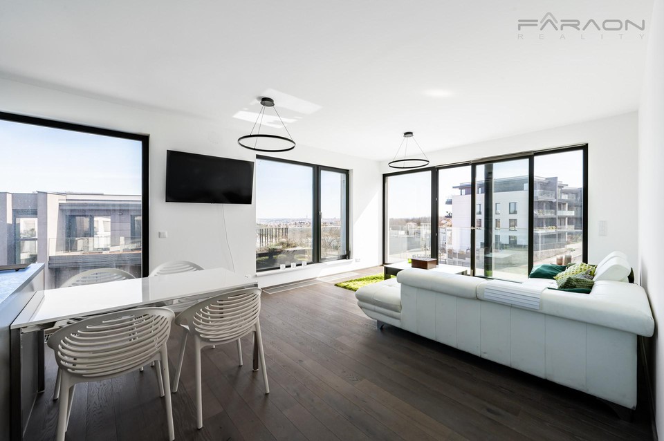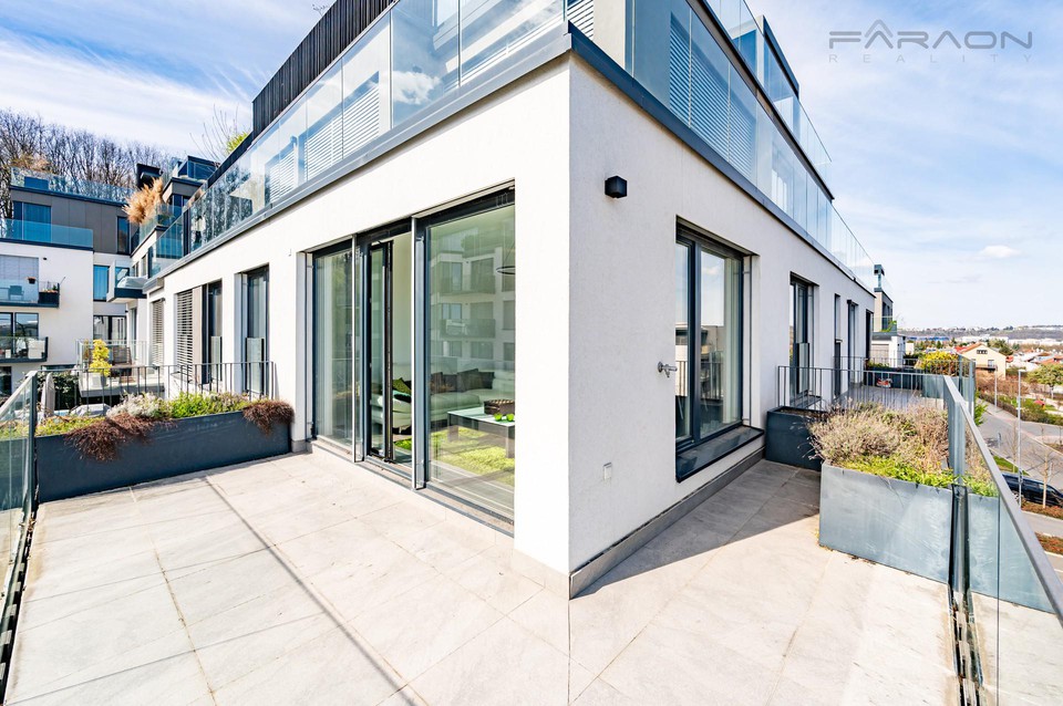 Pronájem krásného, zařízeného bytu 4+kk (106 m2) s terasou (22 m2), sklepem (12 m2) umístěného v novostavbě v žádaném rezidenčním projektu Top Rezidence Na Pomezí, Praha 5 - Košíře. Byt se nachází ve 3. podlaží a z terasy nabízí unikátní výhledy na centrum Prahy. Součástí bytu jsou dvě parkovací stání v 1. podzemním podlaží.