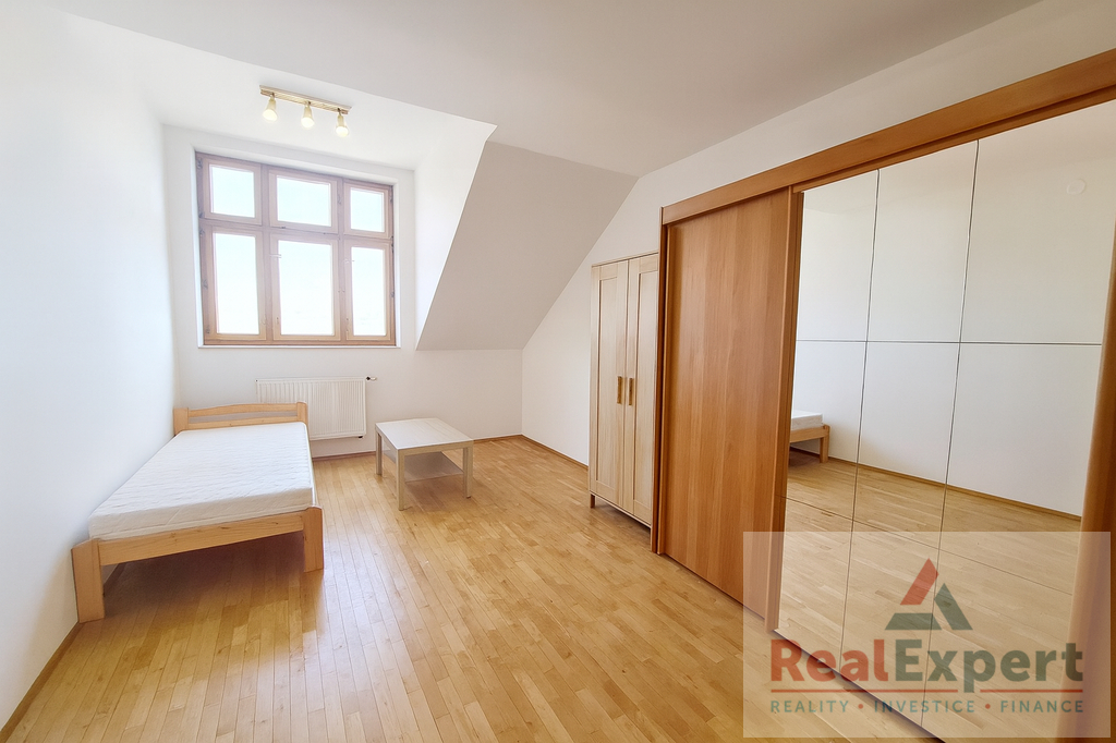 Nabízíme k pronájmu mezonetový byt o velikosti 5+kk/Terasa, o celkové ploše 166 m2, situovaný v 5. NP (poslední patro) s výtahem v bytovém domě v Praze 2 - Vinohrady, ul. Máchova. Ve spodním patře bytu je velký obývací pokoj s kuchyňskou linkou, dvě ložnice, prádelna, koupelna s vanou, sprchovým koutem a WC, dále druhé samostatné WC a prostorná chodba s úložnými prostory. V horním patře jsou dvě samostatné ložnice. Kuchyňská linka je vybavena vestavnými spotřebiči: varná deska, pečící trouba, digestoř, myčka, mikrovlnná trouba. Terasa je orientovaná do klidného vnitrobloku. Topení v bytě je ústřední (vlastní elektro-kotel).