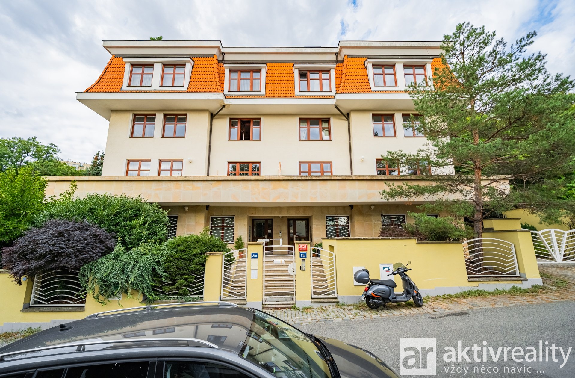 Byt se nachází v prvním patře moderní cihlové vily, kde je pouze 12 bytů se soukromou zahradou, grilem a venkovním bazénem. V ceně bytu je garážové stání.