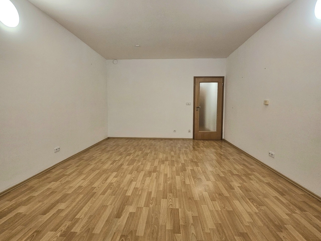 Byt sestává ze vstupní chodby (7 m2), ze které je vstup do oddělené samostatné kuchyně (5 m2), prostorného pokoje (24 m2) a koupelny s WC (5 m2). Byt se nabízí nezařízený nábytkem. K dispozici je kuchyňská linka se sklokeramickou varnou deskou a el. troubou, lednice s mrazákem, myčka a pračka v koupelně. V chodbě jsou velké vestavěné šatní skříně. V prostorné koupelně je vana a WC. Na podlaze je plovoucí podlaha a dlažba. Topení je el. akumulačními kamny. Ohřev vody je bojlerem. K bytu náleží sklep 4 m2 v 1.PP a dále možnost pronájmu garážového stání (15 m2) v 1.PP za 1.500 Kč měsíčně.