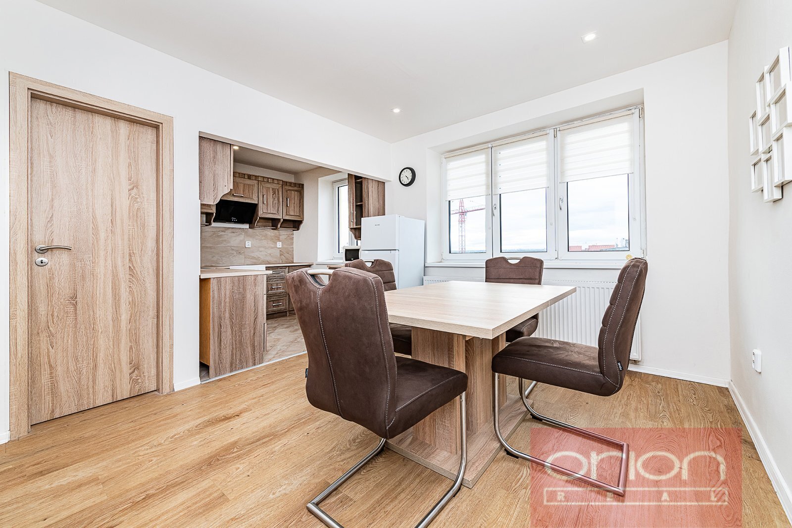 Nabízíme pronájem částečně zařízeného bytu 3+1 (82 m²) v 6. patře činžovního domu s výtahem v jedinečné lokalitě v Praze 2 - Vinohrady u Náměstí Jiřího z Poděbrad. Světlý byt nabízí předsíň s vestavěnými skříněmi, kuchyň s jídelnou a se spíží, 2 ložnice, 2 koupelny - jedna se sprchou a toaletou, druhá s vanou. K bytu patří komora (3 m²). Kuchyň je vybavena všemi spotřebiči - lednice s mrazákem, elektrický sporák s troubou, myčka, mikrovlnná trouba. Na podlahách je vinyl se vzorem dřeva, k vybavení bytu patří pračka v koupelně, topení zajišťuje vlastní plynový kotel. Všechny místnosti jsou orientovány na jihozápad s krásným výhledem do vnitrobloku, kde je k využívání pro rezidenty domu velká udržovaná zahrada se zahradním sezením. Byt nabízí pohodlné bydlení v lokalitě Vinohrady s veškerou občanskou vybaveností, restauracemi, kavárnami, bistry, místními obchody a s výborným dopravním spojením - metro a tramvajové zastávky na Náměstí Jiřího z Poděbrad. V pěší dostupnosti je oblíbený park Riegrovy sady, Václavské náměstí, obchodní centrum Flóra.