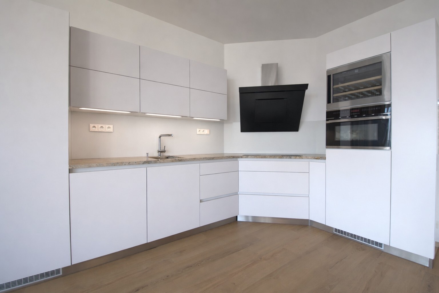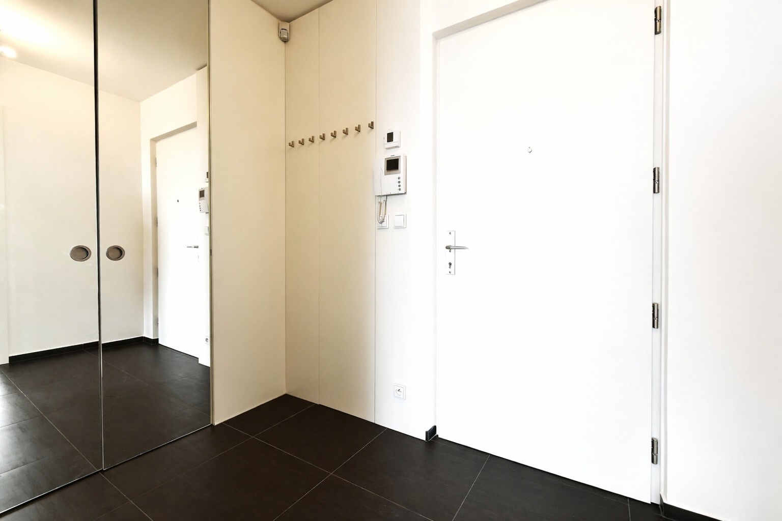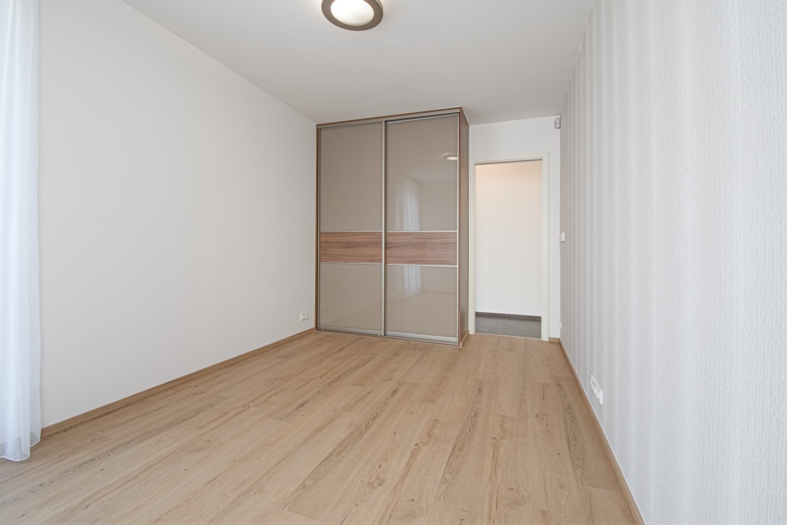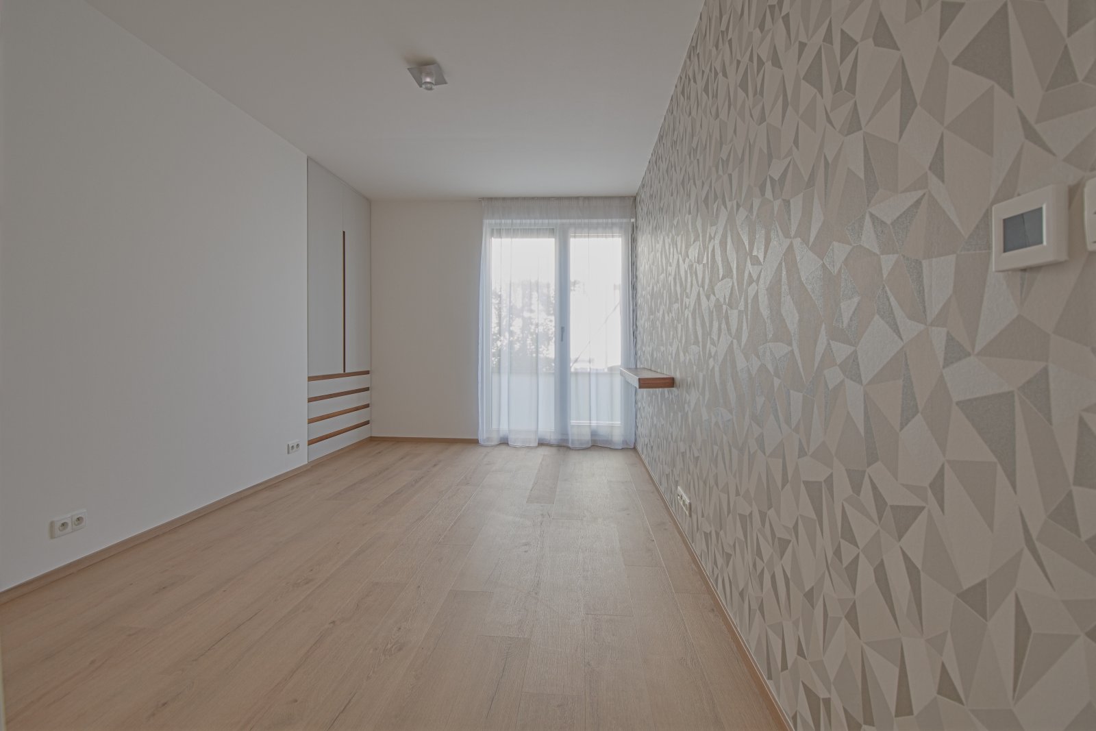 Obě ložnice disponují vestavěnými skříněmi, obývací pokoj je vybaven designovým policovým systémem. Moderní kuchyňská linka je plně vybavena spotřebiči, včetně varné desky Küppersbusch se systémem WOK, lednice s mrazákem, myčky a trouby. Byt má kvalitní dřevěné podlahy a dlažbu, venkovní rolety ve všech místnostech, bezpečnostní dveře a alarm. K bytu náleží jedno garážové stání, jedno venkovní parkovací stání a prostorný sklep.