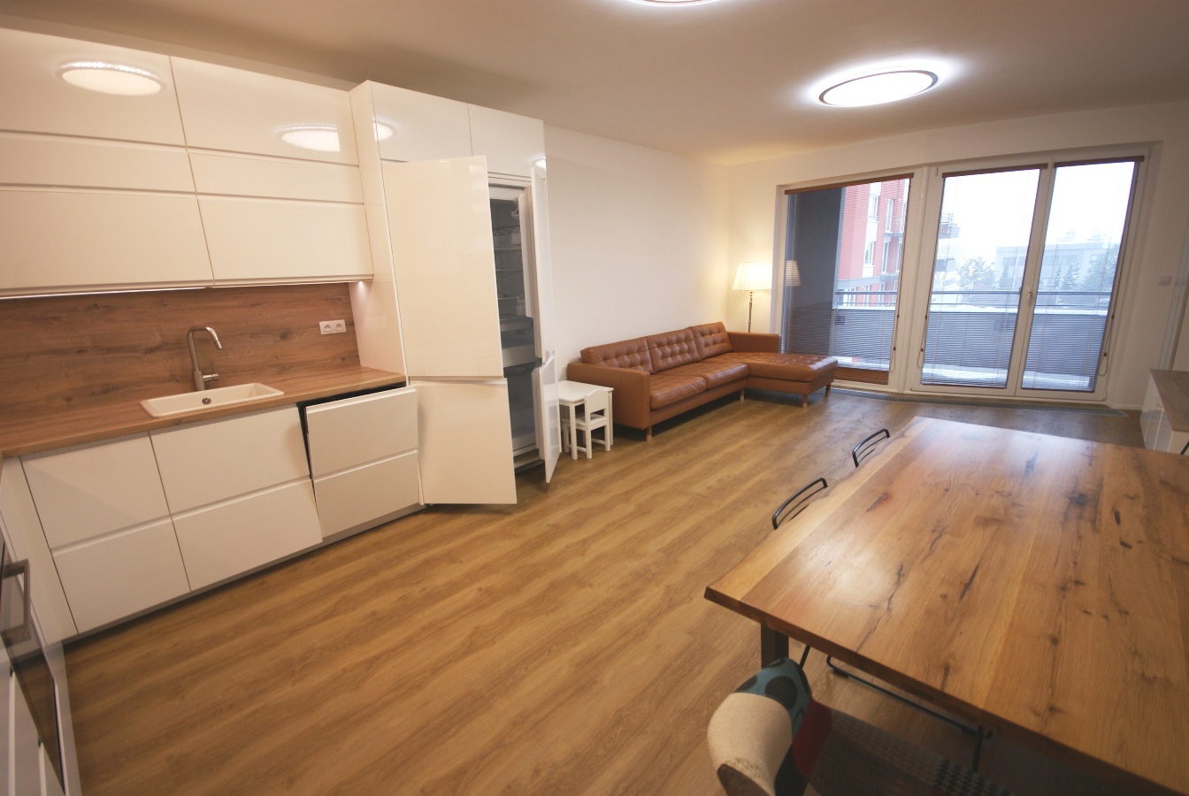 Nabízíme k pronájmu částečně zařízený byt o velikosti 4+kk o výměře 93,9m2 + lodžie 7,0m2 a 9,3m2 + sklep 4,1m2. Jedná se o novostavbu z r. 2014. Byt se nachází ve 3NP s výtahem. V bytě proběhla renovace - nové vinylové podlahy, vestavěné šatní skříně v předsíni a v pokojích, klimatizace. Nová moderní kuchyňská linka včetně spotřebičů. Dvě velké lednice s mrazákem, indukční deska, digestoř, horkovzdušná trouba, myčka na nádobí a mikrovlnná trouba. Byt je částečně vybaven nábytkem (zařízení je případně možné částečně odstěhovat). Dále dvě koupelny (rohová vana + WC) a druhá koupelna (sprchový kout + WC), prostorná komora v bytě. Tři pokoje jsou neprůchozí s vlastními vstupy na lodžii. K bytu náleží velký sklep 4,1m2. Možnost pronájmu garážového stání za poplatek 1.000,-Kč/ měsíčně. V oknech žaluzie, situovaná na východ a na západ. Výborná dostupnost - Metro Zličín na pražský okruh - nedaleko letiště. Metropole Zličín 10min chůze, park, dětské hřiště, cyklostezky. Vhodné na bydlení pro rodinu nebo na spolubydlení. Nájem 33.000,-Kč + záloha na služby podle počtu osob + elektřina bude převedena na nájemce. Kauce ve výši 50.000,-Kč. Provize ve výši jednoho nájmu + DPH. K nastěhování ihned.