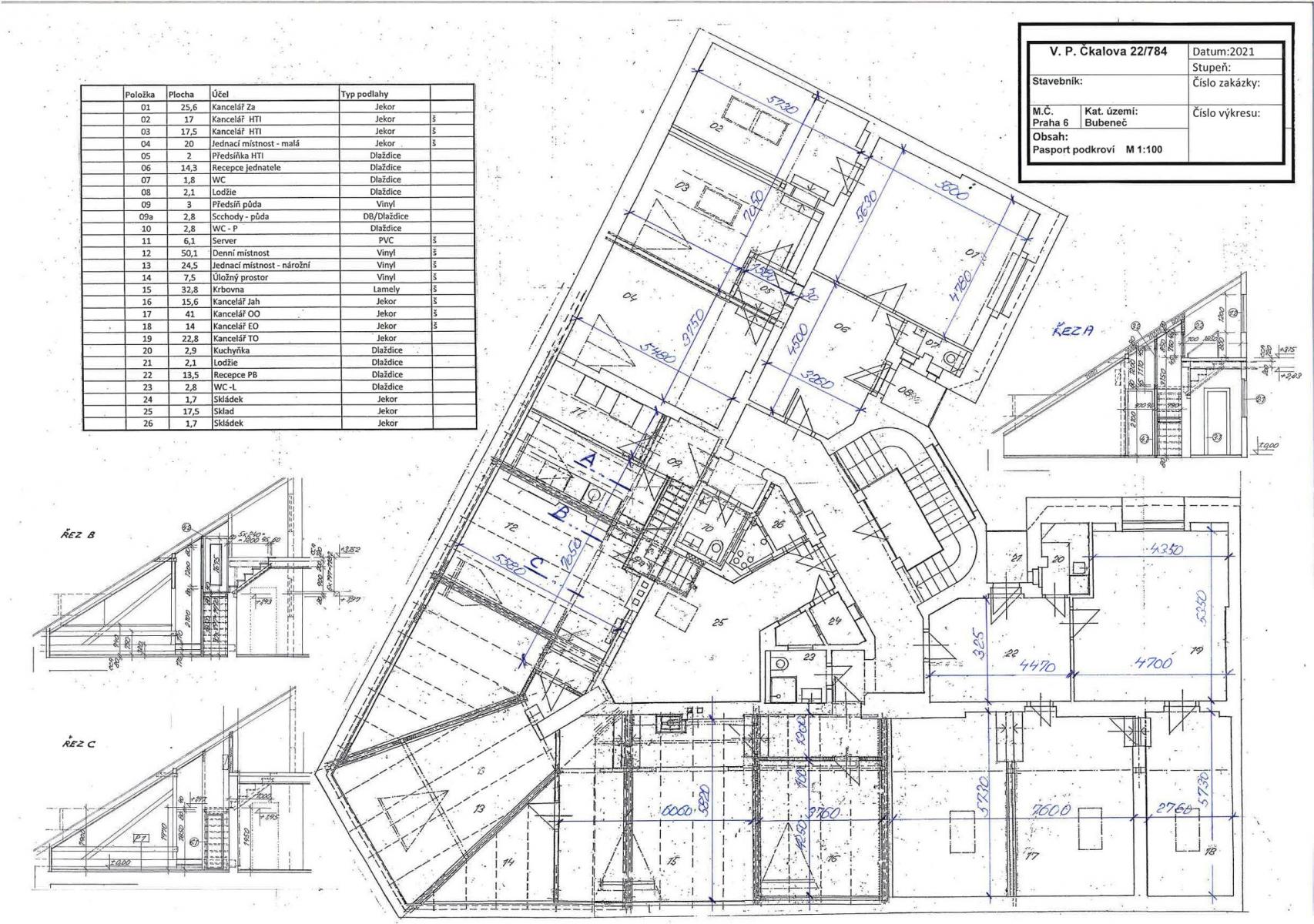 Nájemné a poplatky: zúčtovatelné měsíční zálohy spojené s provozem kanceláří jsou 5.000 Kč. Energie nejsou součástí nájemného a přepisují se na nájemce.