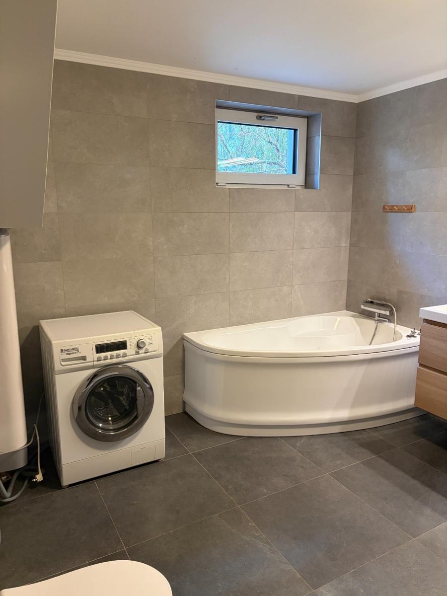 Na podlahách je kombinace plovoucí podlahy a dlažby. V přízemí je podlahové vytápění, v patře radiátory.