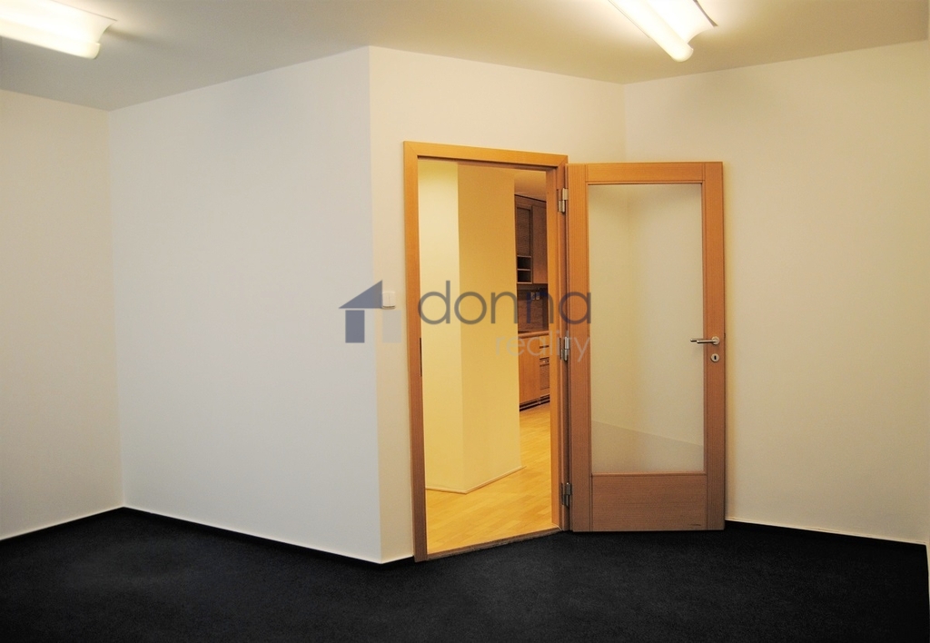 Na podlahách jsou zátěžové koberce a parkety. Topení vlastním plynovým kotlem. Okna jsou zabezpečena mřížemi. Prostory jsou vhodné pro administrativní účely. Cena pronájmu 29.000,-Kč + poplatky cca 1000,-Kč a spotřeba energií. Požadovaná kauce ve výši dvou měsíčních nájmů + provize pro RK. Prostory je možné využít i k bydlení.