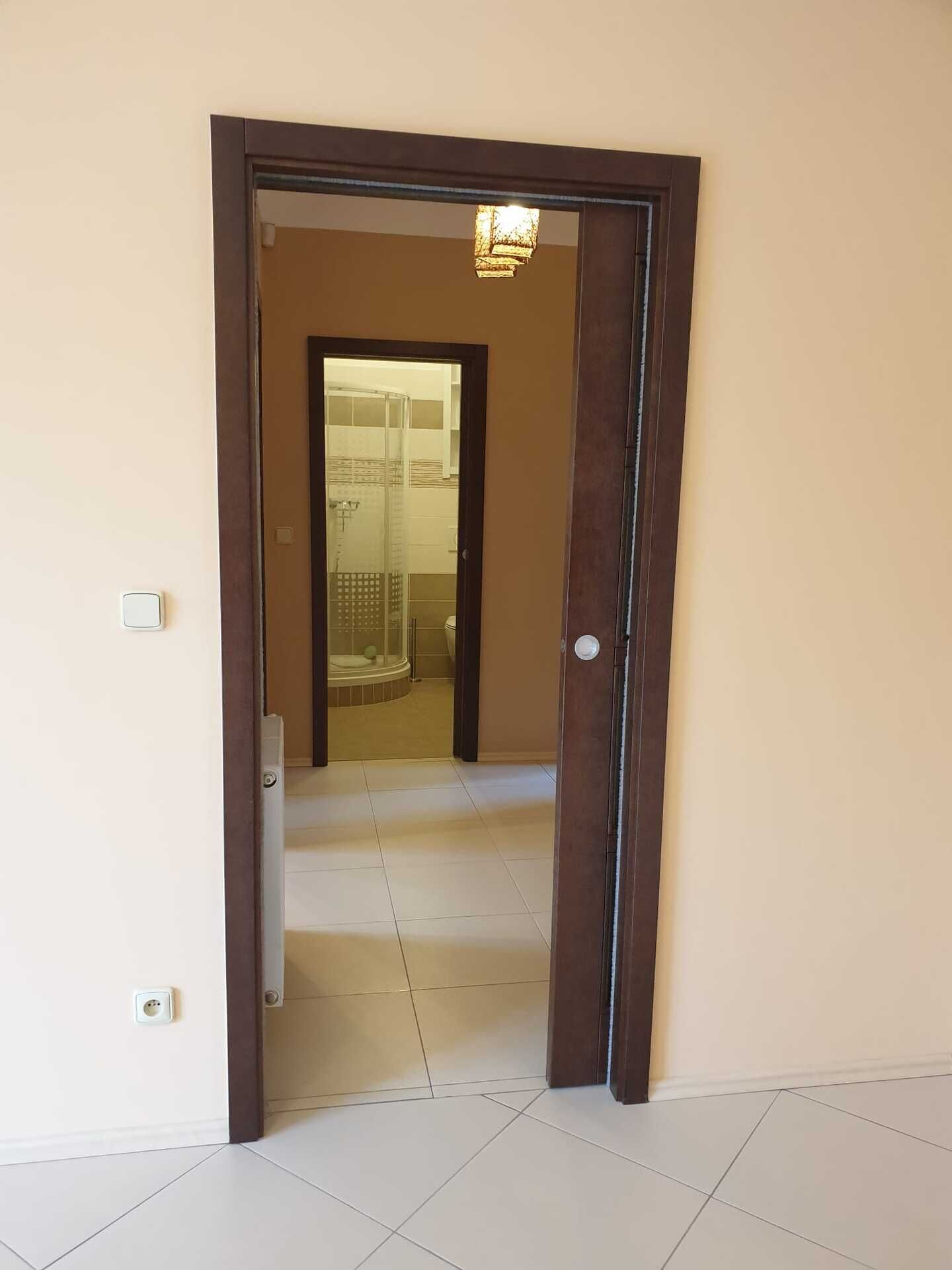 V předsíni, kuchyni a velké místnosti s balkonem jsou posuvné dveře. V ostatních místnostech jsou velmi kvalitní dřevěné dveře na zakázku.