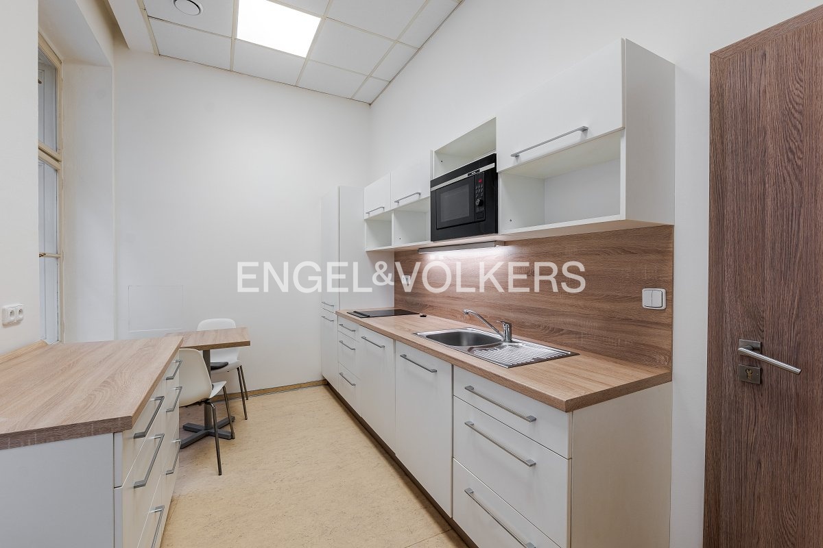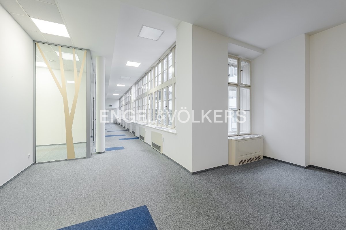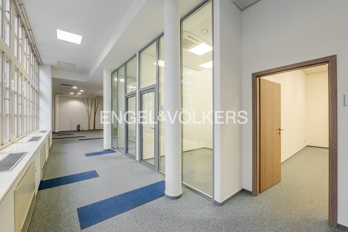 Prostory mají celkovou plochu 300,4 m², nacházejí v 1. patře budovy bez výtahu. Dispozice zahrnuje reprezentativní prostor pro recepci, 8 místností, kuchyňku, oddělené toalety, šatnu a serverovnu. Dispozici lze upravit podle potřeb na náklady nájemce. Kanceláře jsou světlé, s velkými okny s výhledem do klidné ulice. Celý objekt spojuje dlouhá prosklená chodba s výhledem do atria. Prostory jsou aktuálně zkolaudovány na kanceláře. Pronajímatel je nakloněn k rekolaudaci. Jsou vhodné například na školící centrum, kliniku nebo jiné administrativní využití. Podmínkou je, že nájemce musí být plátcem DPH.
